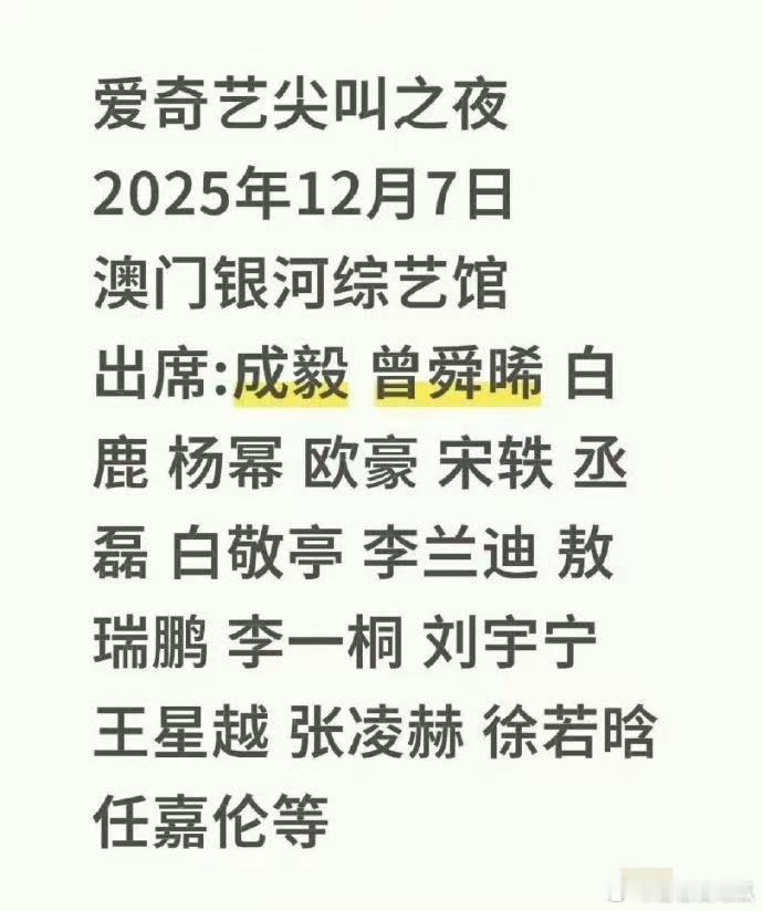 尖叫之夜嘉宾名单疑似曝光!刘宇宁、李一桐、敖瑞鹏、李兰迪都在列,感觉又是CP大乱炖的一夜,坐等官宣尖叫之夜尖叫之夜阵容2025爱奇艺尖叫之夜