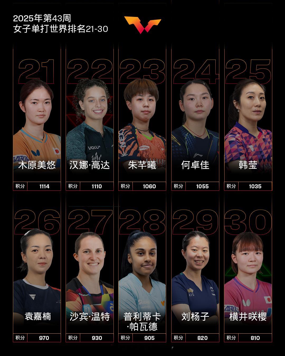 国乒男女单垄断世界前二孙颖莎连续171周排名世一2025国际乒联第43周排名体坛风云[超话]