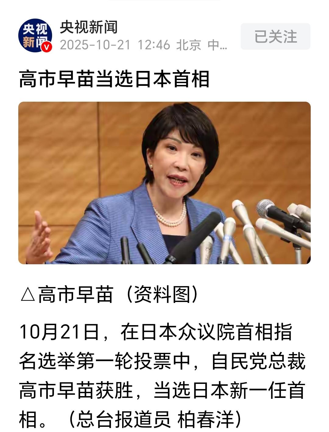 搞事早苗如愿以偿。只是中国有句老话:女人当家,房倒屋塌。不知学习中国文化的日本知不知道。 极右翼的早苗上台是中国人民愿意看到了,爹妈打孩子也得找个借口。一个熊孩子,三天挨九顿都有可能。 接下来就看她是如何作死的了。 个人判断,她撑不过一年。 顺便说一句,她连我们礼节性的祝贺都不会得到。 点右上角关注我,我们一起去看这个魔幻的世界