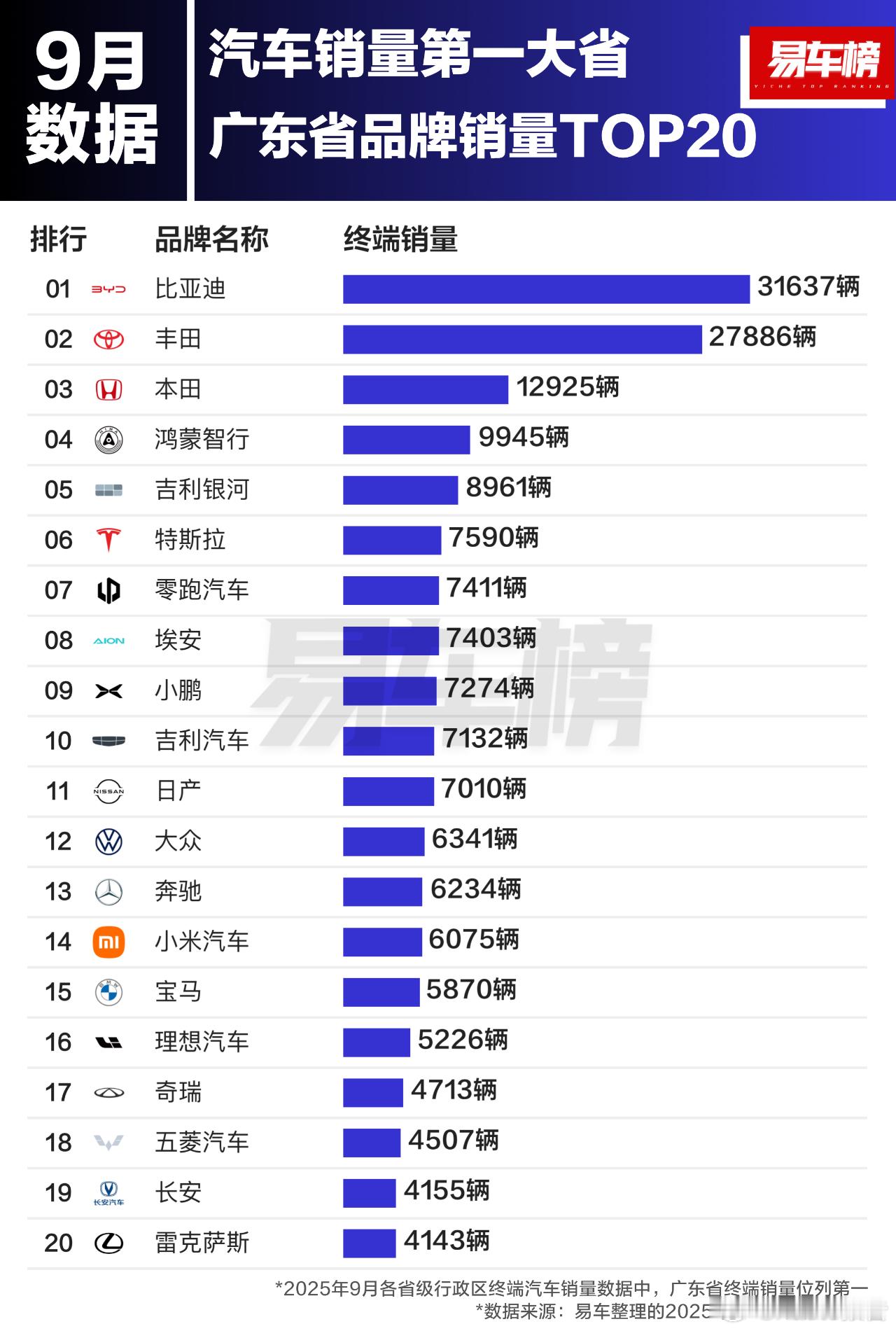 根据易车整理的终端销量数据显示:品牌销量前3名分别为:比亚迪、丰田、本田;终端销量分别为:31637辆、27886辆、12925辆。