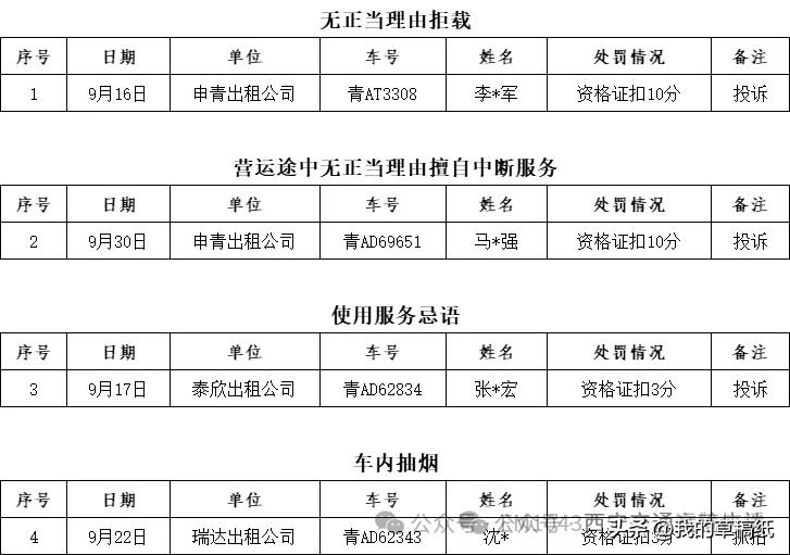 拒载抽烟甩客,西宁这4名出租车司机被曝光! 城市窗口蒙尘,岂容“一只老鼠坏了一