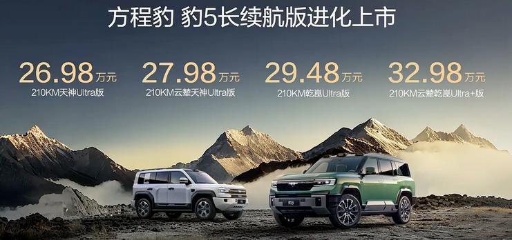 10月20日,方程豹豹5长续航版正式上市,共推出4款配置,售价区间为26.98万