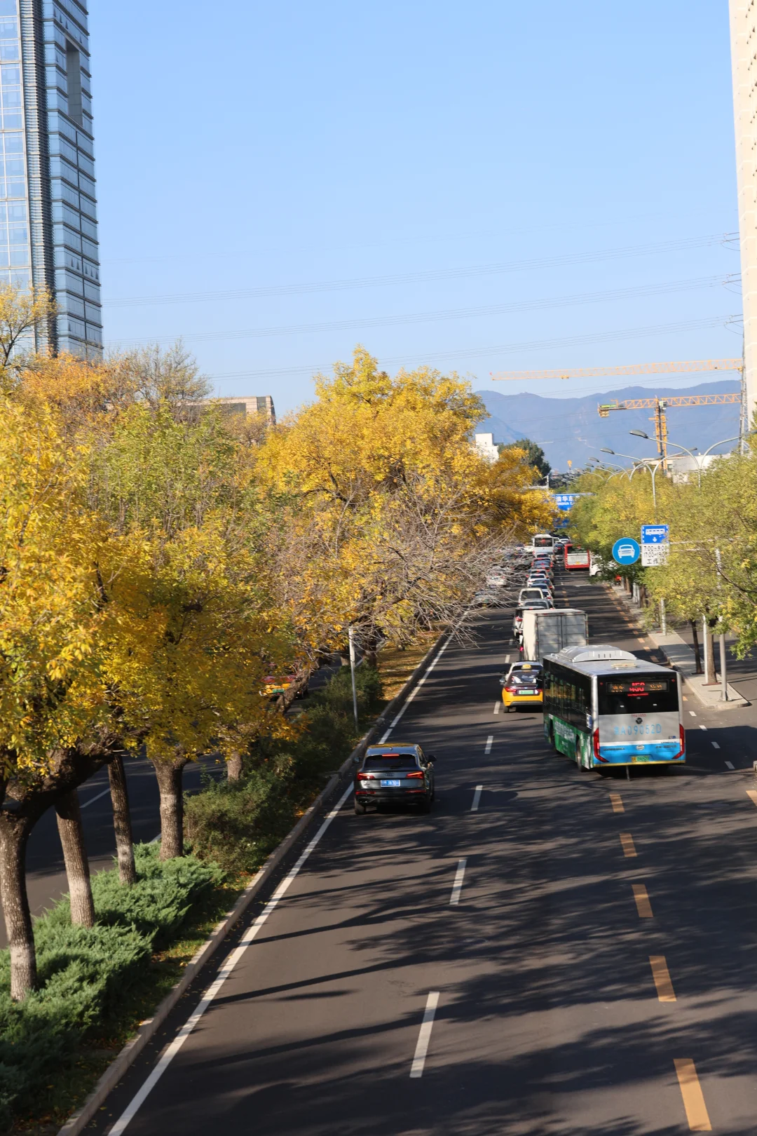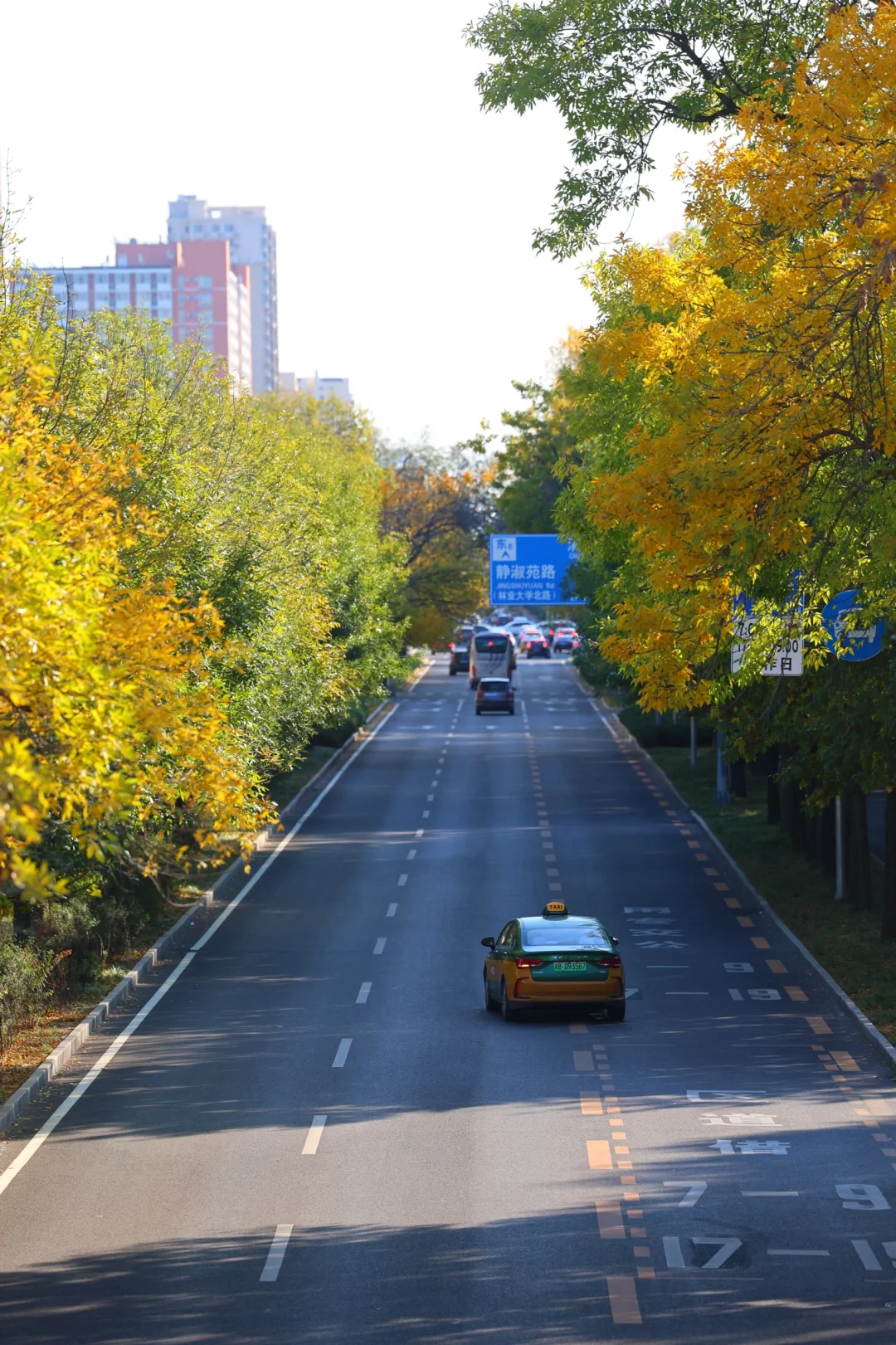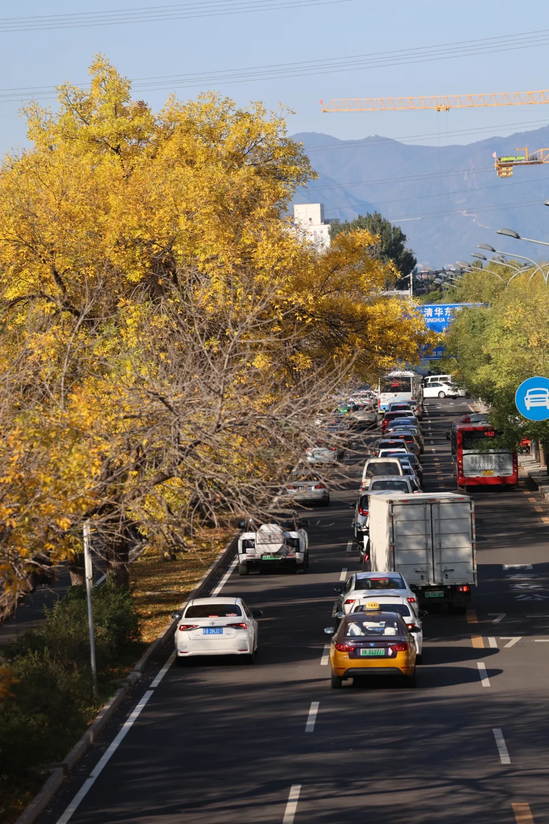 如果是想拍氛围感。拍局部几颗树,那这周还能找到一些地方。不少小的白蜡树,晒不到太阳的,会掉得慢一些。