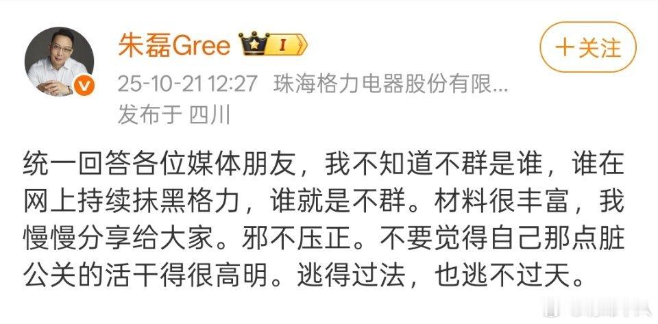 格力高管朱磊最近在社交媒体上的表达欲望很强烈啊。