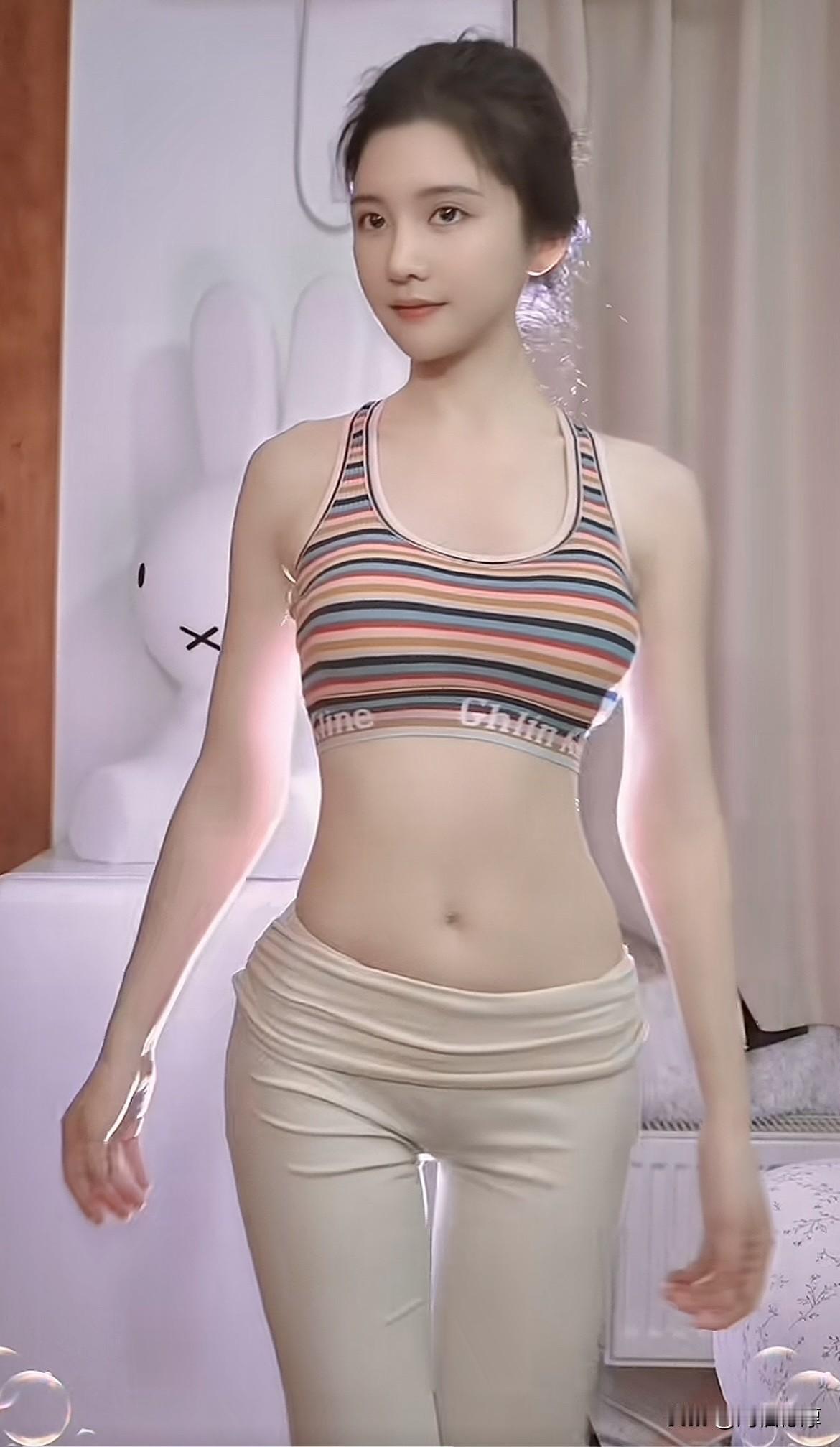 《居家的活力诗章》 条纹的bra,是彩线织的歌, 在居家的角落,漾着活力的波。 束起的发, 绾着随性的绰, 米色的裤, 裹着自在的廓。 米菲的兔, 立在冰箱的侧, 她抬手的弧, 是日常的诗拓。 每一处搭配, 都藏着舒适的钥, 将运动与休闲, 融成生活的乐。 居室为境,她是活力的核, 以一身轻快, 把居家的时光, 写成了关于自在的册。 这样的居家活力穿搭,可让你感受到日常里的小确幸? 生活里的诗感 生活诗意 生活雅致 美学栖居 生活新印章