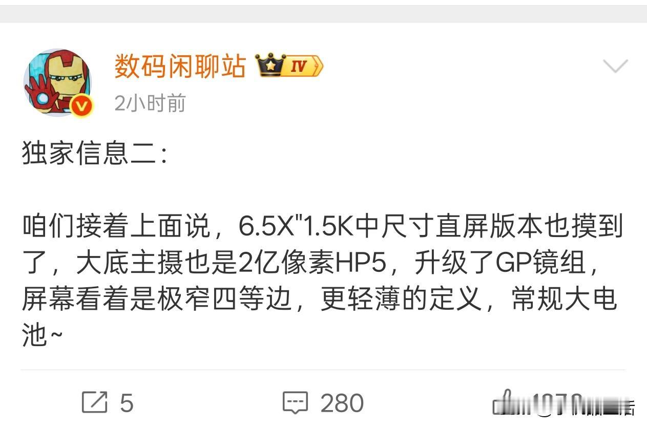 OPPO Reno15 Pro+配置曝光:搭载2亿像素大底主摄 今日,有数码博主曝光了OPPO新款手机Reno15 Pro+的配置信息。 据爆料,该机采用三星2亿像素的大底传感器HP5作为主摄,OPPO Reno15 Pro+搭载5000万像素的传感器JN5作为超广角,还采用同款传感器作为潜望长焦镜头,采用6.78英寸的1.5K LTPO直屏,能实现视觉上的极窄四等边观感,另外还配备了金属中框和无线充电。 此前有爆料称,OPPO Reno15 Pro+预计搭载联发科天玑8系列处理器,内置6500mAh大容量电池,支持80W有线快充和50W无线充电。此外,OPPO Reno15系列有望于今年第四季度正式发布。OPPO手机