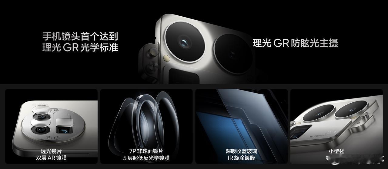 -理光GR防眩光主摄:通过理光GR光学标准认证,7P高透镜片+5层超低反镀膜,反射率低至0.2%;深吸收蓝玻璃+双层AR镀膜,透光率高达97%,还原纯净光影。
