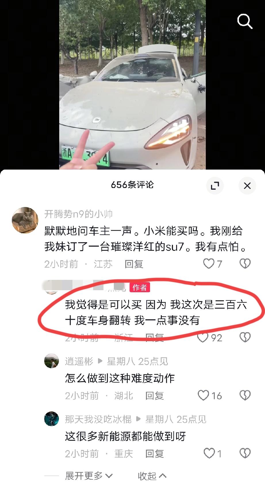 速7美女车主把车开进路边小树林里面去了,碗口粗的大树被车子硬生生推倒了,车头损毁严重。小美女还在视频里面炫起自己的事故车来了…… 当有网友问她“这台车有没有问题,能不能买的的时候”,美女非常自豪且肯定的表示:我这次是三百六十度车身翻转,我一点事没有。我觉得可以买!谁家车没出过事故,出车祸跟车有什么关系。言下之意是她自己操作不当或者车技不好! 不得不说,米粉的自适应能力,我们不得不服啊!
