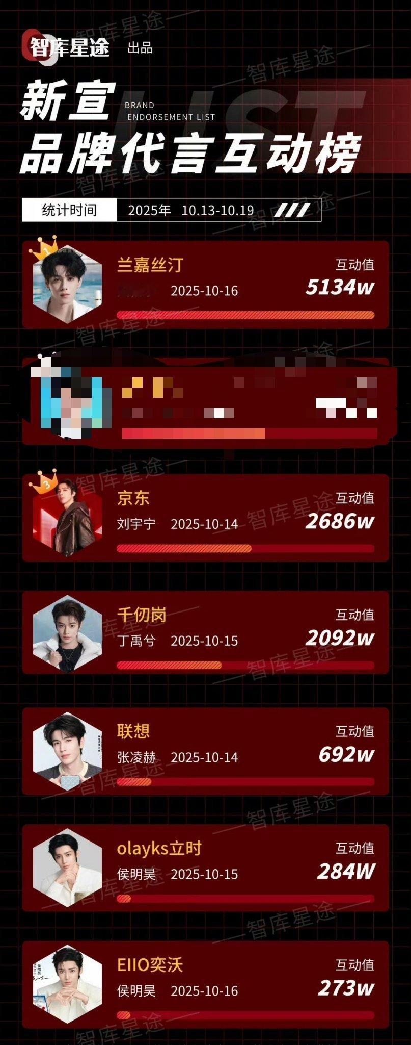 上周新宣品牌代言互动榜