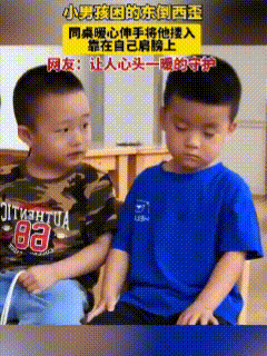 被暖到了!几个幼儿园小朋友坐在一块听老师讲课,不知何时蓝衣男孩困得眼睛都迷离起来,后来头也逐渐东倒西歪起来。身旁的迷彩服男孩见状,第一时间用手拦住蓝衣男孩。 不仅如此,迷彩服男孩并没有叫醒他,而是把蓝衣男孩的头放在自己的肩膀上,好让蓝衣男孩安全睡觉。看到这一幕,内心真的很受触动,小小年纪,已经是一枚暖男,长大了还了得! 可以说,老师在给所有的孩子们上课,迷彩服男孩却给所有人上了一课。人间自有温情在,不论身处何时也不论年龄大小,请记得献出一片爱心,温暖整个世界。各位网友,您觉得呢?