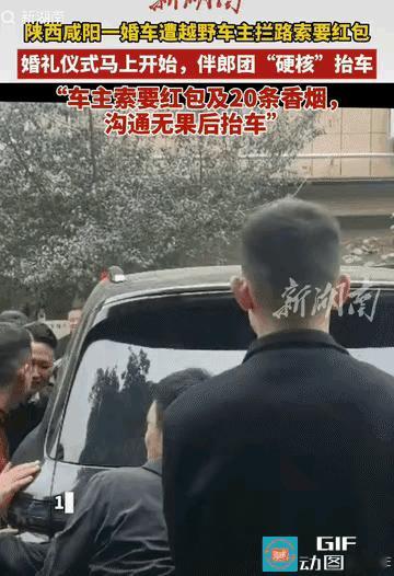 婚车遇“劫道”!要20条中华才放行,伴郎团直接抬车开路 陕西咸阳一对新人办婚