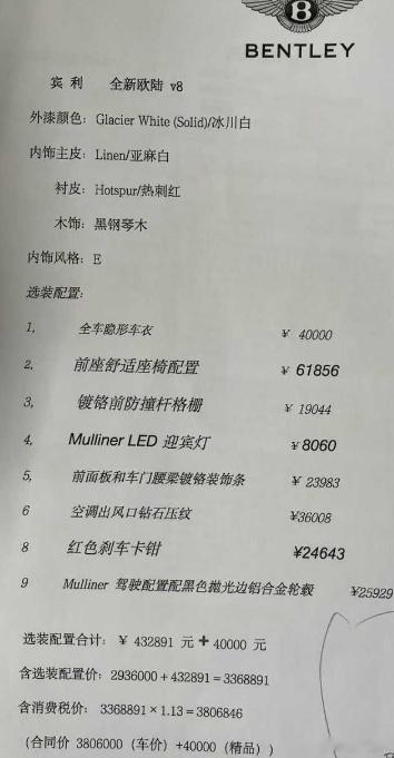 宾利欧陆GT V8,23年/6000KM,冰川白/热刺红/亚麻白