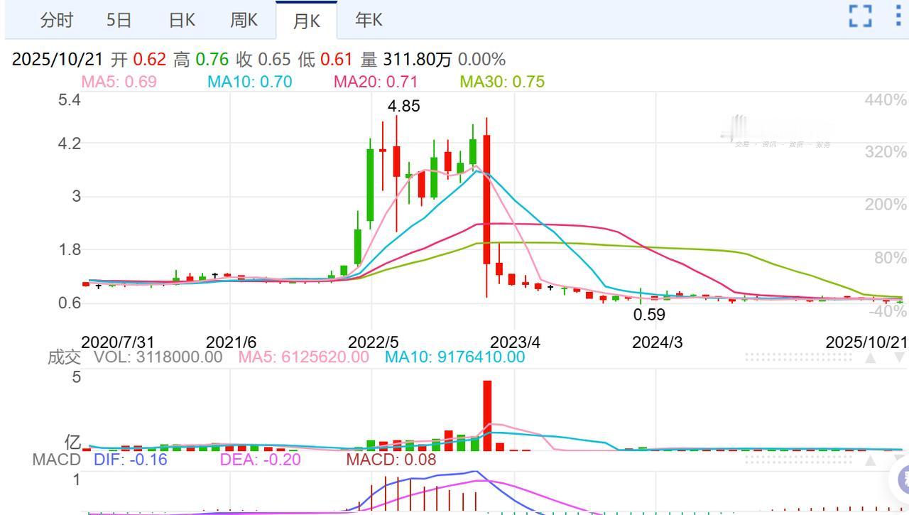 【仙股】港股可不是好玩的,虽然今年以来恒生指数不断上涨,然而这只股票大家可以看到,如果你4.8港元买入的话,现在可是跌到了0.65港元。这个下跌幅度可不小,关键今年以来参与交易如果手不快的话,就会被套。 实际上,香港市场此类中高价股变仙股的品种还是很多的。一不留意就会套牢,关键是有时是直接一个日跌80%以上,然后是阴跌更低。