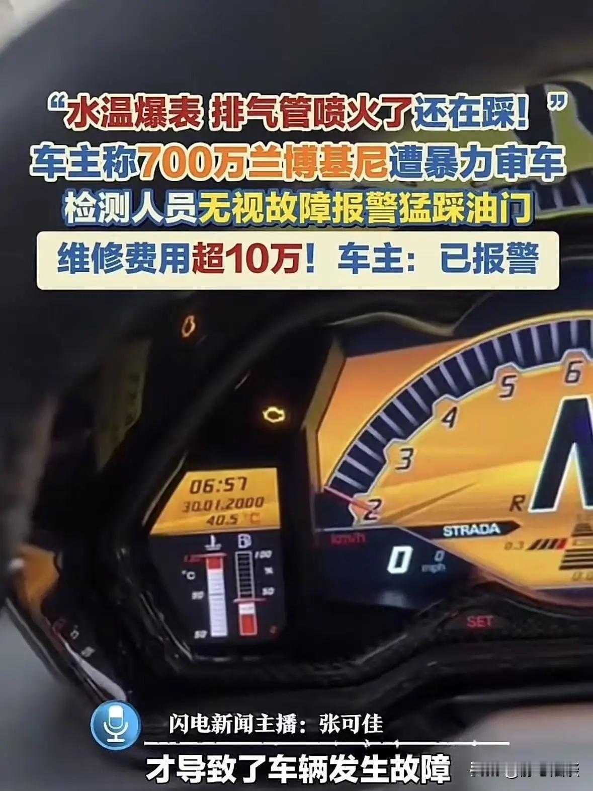 四川成都,男子开800万豪车去年审,竟被工作人员几脚踩到排气管喷火,发动机没撑住直接爆缸,男子气急败坏,冲进去查看,发动机舱呼呼冒烟,车底下漏的都是防冻液,水温表也已经爆到130℃,男子大怒,要求监测站承担责任,但工作人员表示检测合规,是男子车有问题。4S店检查后表示,高温导致发动机缸体变形,这维修费起码是10万起。 奇葩的检测,文章的机构和检测人员都该赔偿,别说是超跑,就行普通车也不能像他们的操作行为检测,普通车不检测,可以正常行驶,检测员不看匹配乱操作,就是新车一样报废,全国各地的检测,纯属胡闹,试想,车子有问题,车主会去给修理,检测员乱操作,直接报废,责任就在检测机构和人员的责任,对于这样的检测机构,根本不需要,多这样的机构,浪费多少国家纳税人的资金,取消这样的机构,可省多少国家经费,还能让普通人与政府有亲和力,汽车检测机构还是取谛了吧,没有必要存在……