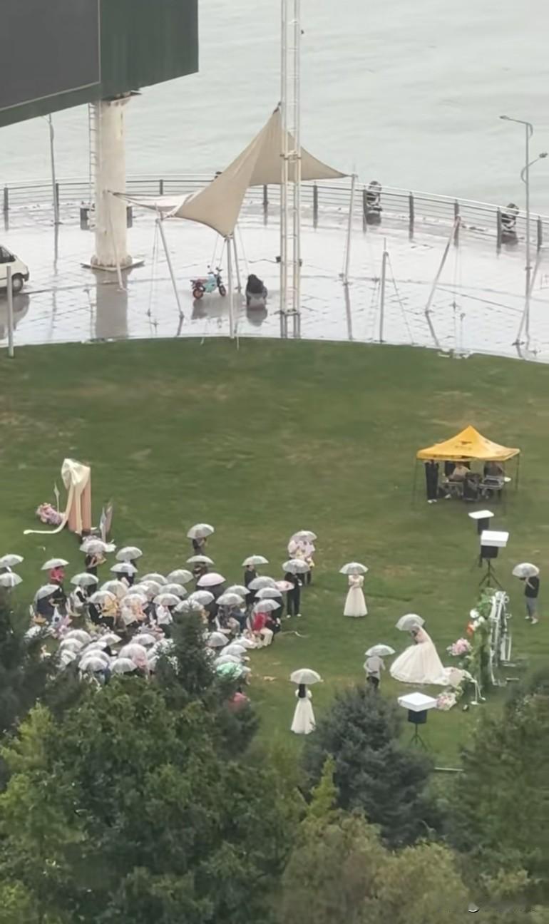 下完雨又下冰雹,好几万租的草坪,下刀子也要走完仪式,难忘的婚礼 老人说结婚那天下雨一辈子不用愁钱了。他俩互相旺,这婚结完,以后那是要风得风,要雨得雨。淋湿透了,淋透透的,让你记住结婚的代价