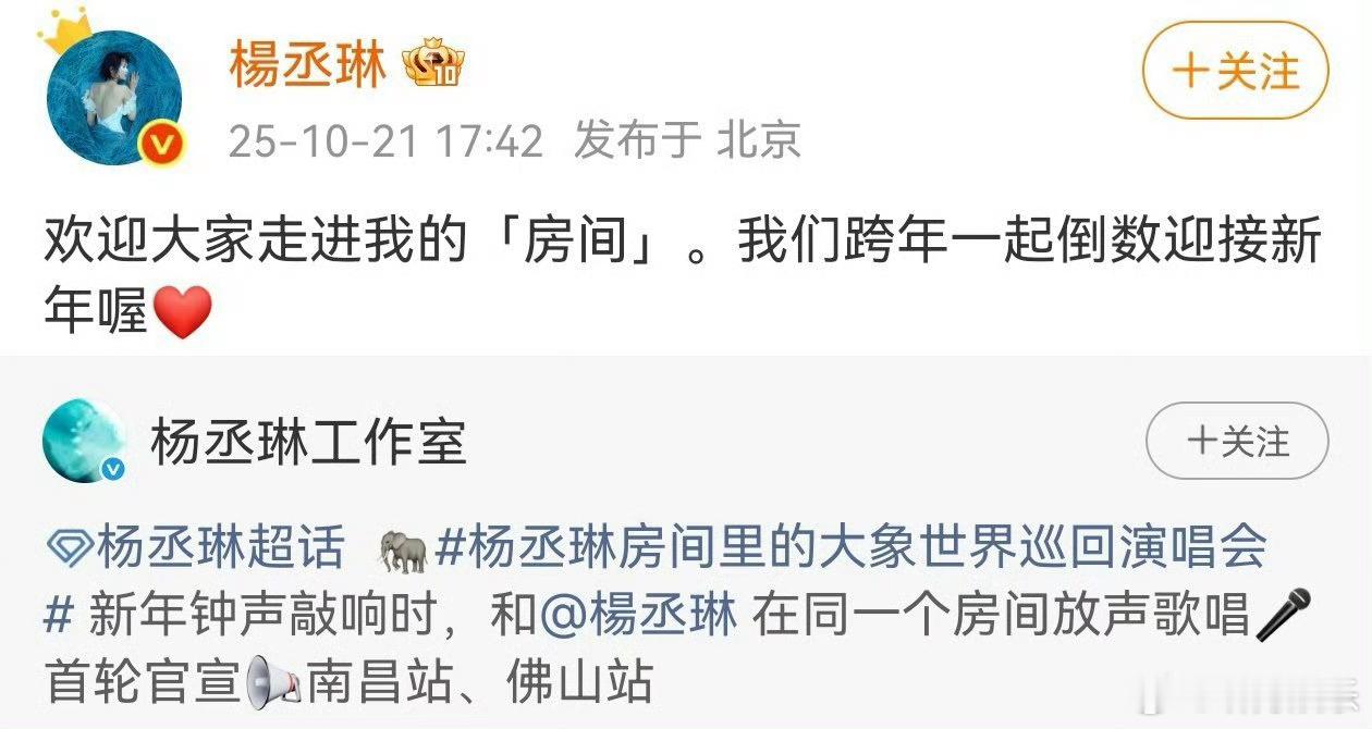 杨丞琳跨年演唱会官宣 粉丝过年了,杨丞琳宣布「房间里的大象」世界巡回演唱会将于跨年夜开唱!燥候[打call] 杨丞琳跨年夜开唱