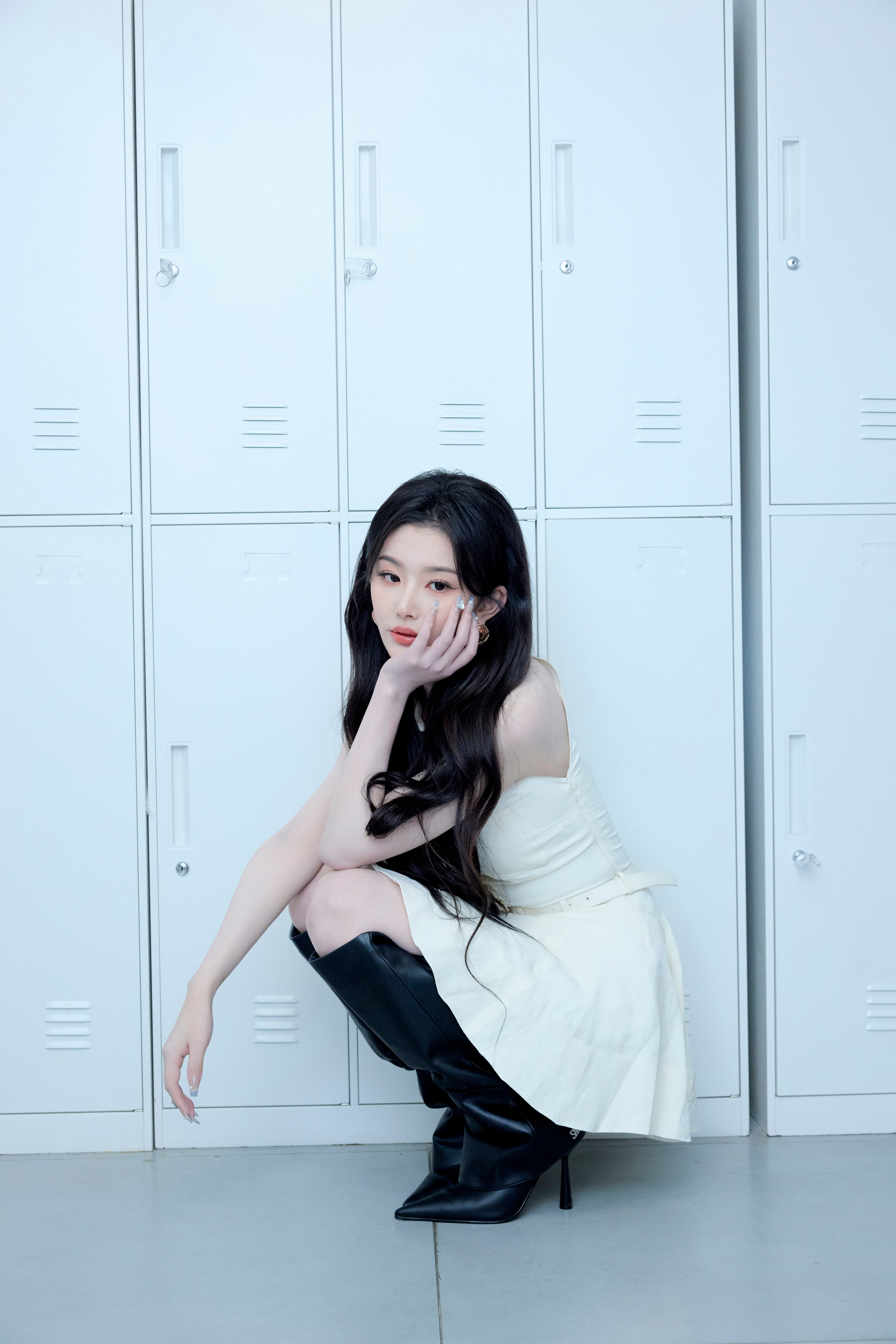 孔雪儿白裙漾着清浅笑意,长靴踏碎慵懒风,把青春的飒爽与柔媚,揉进每一缕发梢的弧