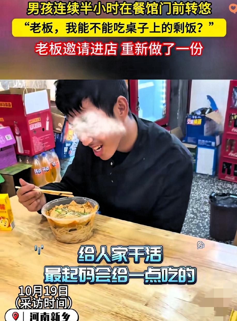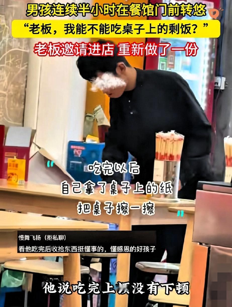 “我想吃。” 这三个字,比任何哭声都更让人心酸。 在河南新乡的一家小饭店门口,16岁的男孩徘徊许久,只是想问问桌上的剩饭剩菜能不能给他。 母亲去世、无人照管,他宁愿捡饭也不愿伸手要钱,还想着靠干活换一口吃的。 老板没有让他难堪,直接端上一碗热面;男孩吃完一半,还把桌面收拾干净,小心翼翼地问剩下的能不能打包,留给下一顿。 这一幕,比任何煽情故事都更戳人心。 我们总说要帮别人,但很多时候,最难能可贵的是保留对方的尊严。 不施舍、不围观、不评判,只是像对待一个普通客人那样,给他一碗面、一份尊重。这不仅是善良,更是智慧。 如果你遇到这样的孩子,你会用什么方式去帮助他?你觉得如何在不伤害尊严的前提下伸出援手?