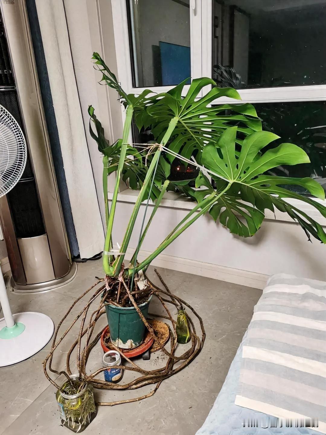 神奇!龟背竹竟会自己“找水喝” 你是否想过,植物也有“找水”的智慧?龟背竹就做到了!它有着独特的根系结构,当土壤缺水时,其气生根会像灵敏的探测器,向潮湿的空气或水源处伸展。有的龟背竹甚至能将根伸到附近的水盆里。这种自我调节的生存本领,让它在干旱环境中也能努力存活,仿佛在向我们展示大自然的奇妙与生命的顽强。