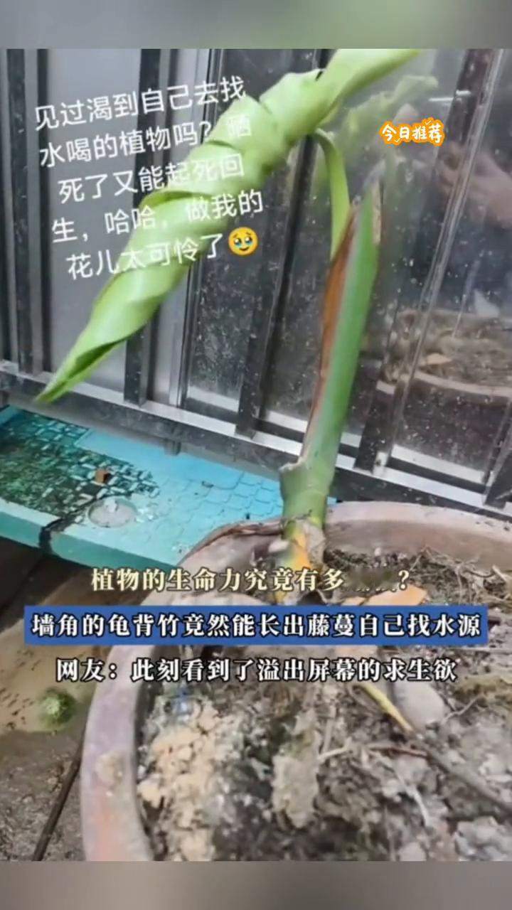 见过渴到自己去找水喝的植物吗?晒死了又能起死回生,做我的花儿太可怜了。植物的生命力究竟有多顽强?墙角的龟背竹竟然能长出藤蔓自己找水源。网友:此刻看到了溢出屏幕的求生欲。 喜欢就点个关注吧!