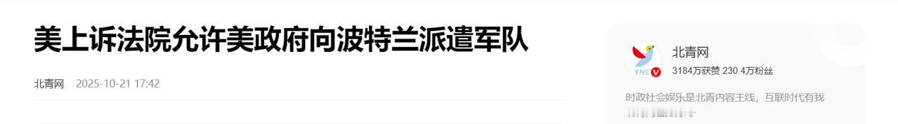 美国正式同意了! 10月21日,美国上诉法院点头了,允许特朗普总统把军队派到波特兰市去,这事儿可闹大了! 要知道波特兰这地方早就是抗议的 “重灾区”,当年乔治・弗洛伊德事件后,这里的抗议活动硬生生持续了超 100 天,天天有人举着 “黑人的命也是命” 的标语围在警务中心外,时不时就和警方爆发冲突,光是有记录的逮捕就有好几次,一会儿 15 人一会儿 10 人,可见局势从来就没真正降温过。 之前联邦执法人员只是来 “支援”,就已经闹出了天大的乱子 —— 那些穿着迷彩服却没任何标识的人,动不动就用催泪弹驱散人群,连美联社的摄影记者都被警棍和胡椒喷雾招呼,联合国都出来批评说这是 “非法拘捕”,现在正规军队要开进来,力度只会翻好几倍。 更要命的是,这可不是美国第一次用军队对付国内抗议,往前数几十年的洛杉矶骚乱就是活生生的教训。 1992 年那回,就因为四名殴打黑人青年的警察被判无罪,整个城市瞬间炸锅,抗议者打砸抢烧,上千家店铺被洗劫,3000 多栋建筑被烧毁。 后来老布什派了 1.35 万名国民警卫队和联邦士兵进城,表面上是控制住了局面,可代价呢?58 人死亡,2383 人受伤,上万人被捕,直接损失高达 10 亿美元。 更荒诞的是,士兵们根本没受过处理民用骚乱的训练,听到警员喊 “掩护” 就对着房子扫射 200 多发子弹,屋里三个孩子差点没命。 现在波特兰的抗议者本来就对联邦政府积怨已深,当年那些没标识的执法人员都能激起那么大怒火,如今荷枪实弹的军队开上街,简直是把抗议者往更激进的方向推。 再说这事儿本身就透着股别扭劲儿,俄勒冈州州长和波特兰市长早就把话说死了,反复强调 “波特兰运行良好,不需要联邦派兵”,甚至直接把特朗普政府告上了法庭。 之前还有联邦法官签发过临时限制令,说波特兰的情况根本算不上 “叛乱”,常规警力完全能搞定,可这次上诉法院硬是把禁令给推翻了。 这操作说白了就是联邦硬插手地方事务,要知道美国法律里有个《地方保卫队法》,本来就禁止联邦军队随便参与国内执法,特朗普这是靠着《反叛乱法》打擦边球,这种 “越权操作” 只会让当地人更反感。 就像之前他往洛杉矶派 2000 名国民警卫队,加州州长直接告到法院,说他违法,现在波特兰人看到军队进来,只会觉得这是 “未经邀请的占领”,抵触情绪一上来,冲突必然升级。 还有个关键问题,这些军队根本不是来 “灭火” 的,反而可能带着政治目的。特朗普早就把波特兰的抗议者骂成 “本土恐怖分子”,还签行政令把 “反法西斯运动” 列为恐怖组织,说白了就是想把抗议往 “无政府状态” 上靠,用 “恢复秩序” 的名头捞政治资本。 之前他往华盛顿、芝加哥这些民主党主政的城市派兵,被骂成 “用军队对付选民”,现在波特兰这步棋,明眼人都能看出是在激化矛盾。 而且联邦执法人员之前的表现已经证明,他们的介入只会让局势更糟 —— 本来抗议规模已经在缩小,结果他们一用催泪弹、一抓无辜民众,立马又把人全惹来了。 军队可比那些执法人员装备精良多了,真要是发生对峙,橡皮子弹、催泪弹肯定是家常便饭,搞不好还会出人命,到时候抗议就不是针对警察暴力了,直接变成反对联邦政府的 “军事干预”,规模只会越闹越大。 想想都觉得魔幻,一个国家把军队开进自己的城市对付老百姓,还要打着 “维稳” 的旗号。之前波特兰市长自己去游行,都被联邦特工的催泪瓦斯呛得直咳嗽,现在军队来了,普通民众的处境只会更惨。 那些之前举着标语和平抗议的人,看到荷枪实弹的士兵,要么被迫离开,要么就会被激怒成更激进的群体,扔烟花、砸围墙这些之前的小打小闹,搞不好会升级成焚烧建筑、冲击军营。 而军队的纪律性摆在那儿,只要有人反抗就可能动武,这就形成了死循环:军队越强硬,抗议越激烈;抗议越激烈,军队越强硬,最后受苦的还是普通市民,就像洛杉矶骚乱后,上万个家庭无家可归,2 万人失业,那些士兵拍拍屁股走了,烂摊子还得当地人自己收拾。 现在上诉法院开了这个头,等于给特朗普的 “派兵计划” 开了绿灯,之前被阻止的其他城市部署可能也会跟着重启。 可历史早就证明,军队从来不是解决社会矛盾的钥匙,1992 年洛杉矶的硝烟刚散没多久,波特兰就要重蹈覆辙。 那些即将开进波特兰的大兵,手里的枪本来是保家卫国的,现在却要对准自己的同胞,而那些抗议者本来只是想讨个说法,现在却要面对真枪实弹的威胁,这场景不管怎么看,都是一场注定失控的闹剧。