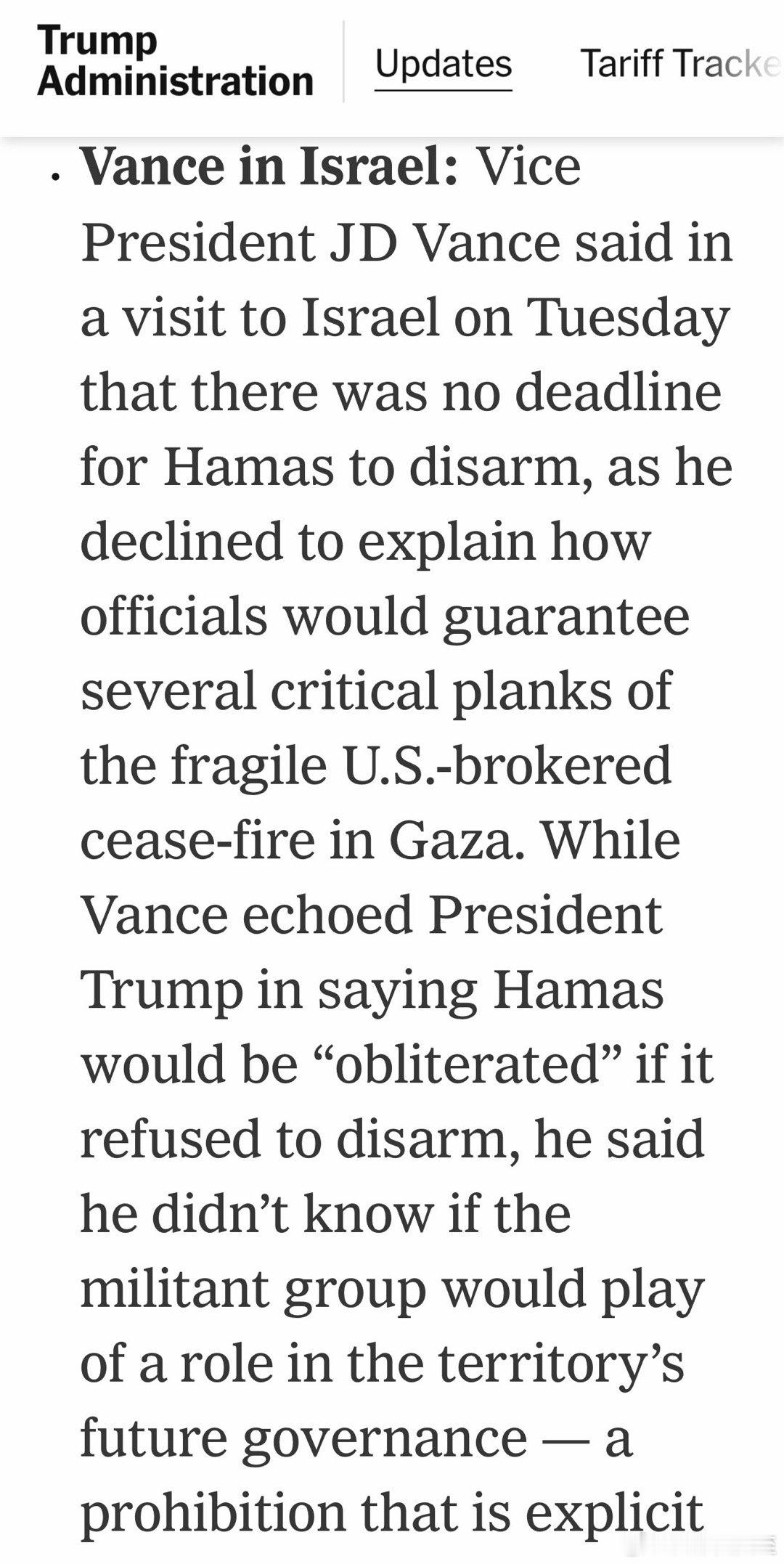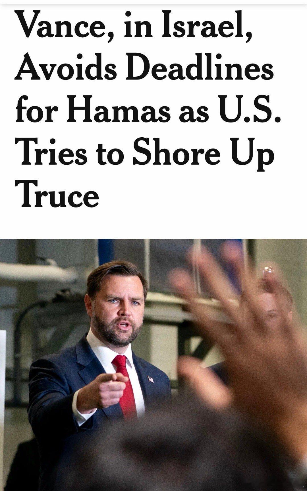 副总统在以色列重申:如果哈马斯不交出武器,会被消灭