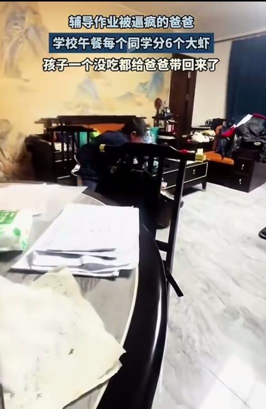 你看给孩子气的?爸爸辅导孩子做作业,讲了很多遍,孩子就是学不会。 爸爸的耐心慢慢地被孩子消磨殆尽了,就训了孩子几句。孩子也很委屈,就哭了起来,爸爸看到孩子哭了,更加生气了,一个没忍住,就踢了儿子一脚。 孩子一气之下,将碗里的大虾扔进了垃圾桶。 儿子委屈的跟妈妈说:“这是我专门给他带的大虾,每次学校有大虾,我就会给他带回来。我为什么要给他带呀!人家都没给爸爸妈妈带过,就我带了。”说着说着就委屈的哭了起来。 妈妈说:“因为你孝顺呐!” 孩子看到爸爸这样对待自己,就对妈妈说:“孝顺啥呀?有用吗?我以后再也不给他带了,我给你带。” 说完,就把刚刚扔进垃圾桶里的大虾,捡了回来,递给了妈妈。 网友看到后评论说,相比成绩而言,更让人感动的是六个大虾一个没吃都惦记着爸爸了,而且每次都带,有孩如此成绩不重要了。 还有的网友说,我从来不直接辅导我儿子的作业,都是他妈妈给辅导检查!往近了说为了父子不反目,往远了说我想多活几年… 孩子的成绩虽然重要,但是,只要孩子努力了,没有达到家长的理想,也不用太苛责孩子。 毕竟,每个孩子都是独一无二的有的孩子成绩好,有的孩子就是成绩差。 成绩也不是万能的,与其如此看中孩子的成绩,不如顺其自然,别给孩子太多的学习压力,没准孩子的成绩会越来越好呢? 如果家长一味的逼迫孩子,可能会适得其反,不仅孩子的成绩没能提高,孩子的厌学情绪也会上升。长此以往,不利于孩子的健康成长。 大家觉得呢?欢迎大家评论区讨论留言。