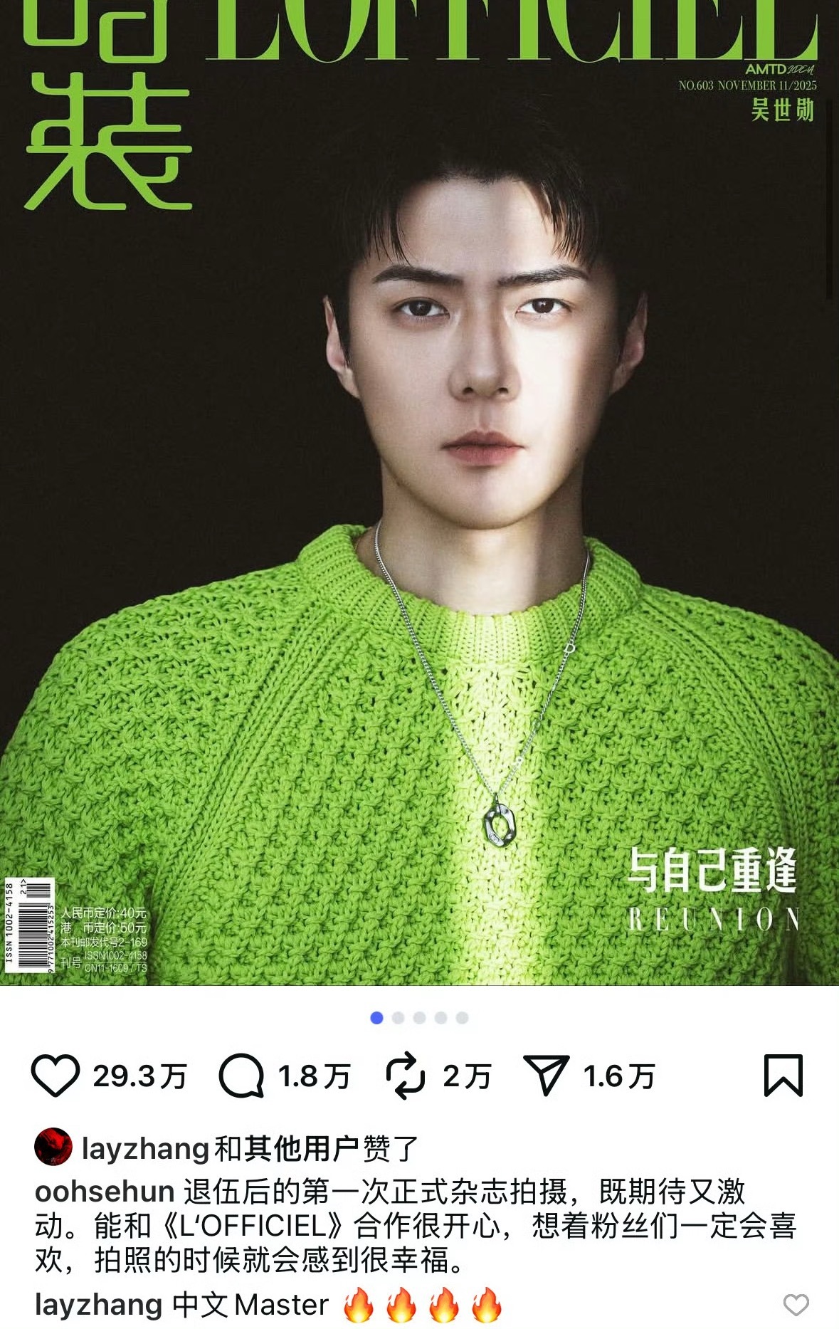 张艺兴点赞评论吴世勋[打call]两位关系好好