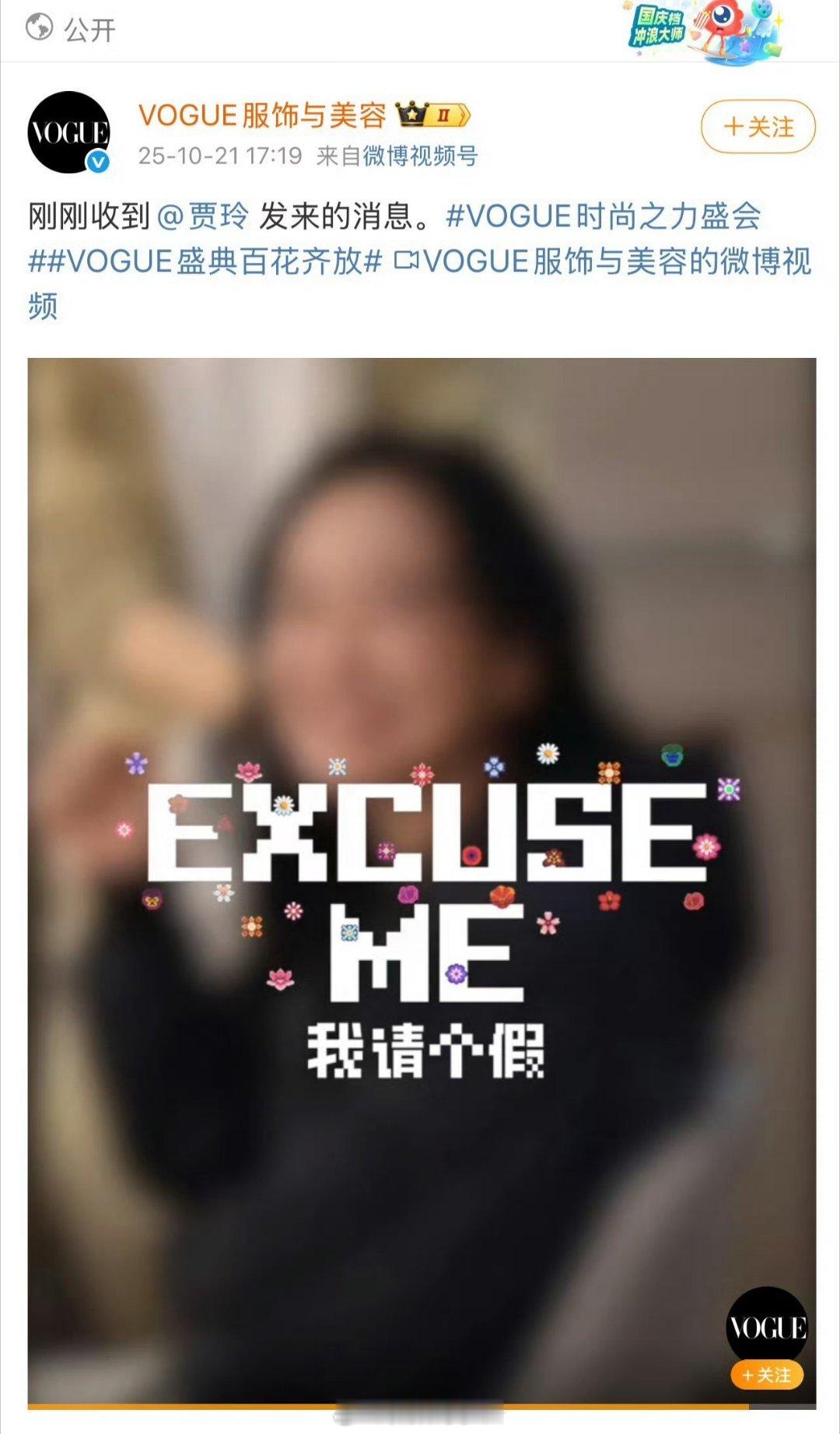 贾玲VOGUE请假视频好尴尬的请假视频,太莫名其妙了[笑cry]