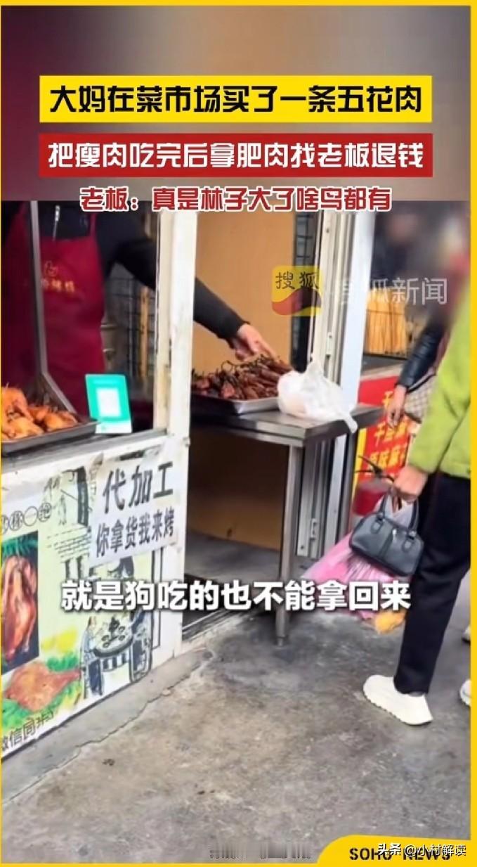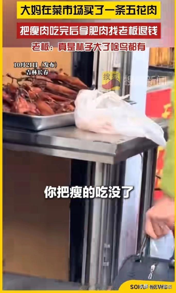快来个东北人告诉我,东北人绝对不是这样的[捂脸] 吉林一个大妈在菜场买了烤五花肉