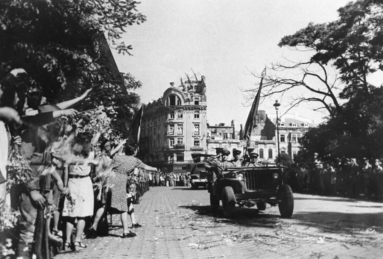 1944年,保加利亚,索菲亚。当地市民欢迎苏联红军解放者。苏联红军于1944年9