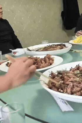 小女孩夹进嘴里的是什么虫子?居然还是活的,好歹把它弄熟了也行啊。说实话,就这盘虫子,倒贴钱,我也咽不下去,这也太生猛了!