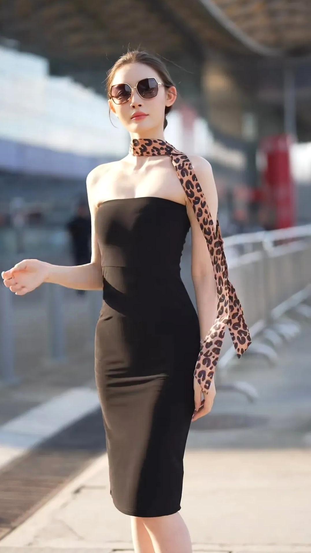 时尚气质穿搭,复古连衣裙尽显长腿魅力!黑丝袜美腿