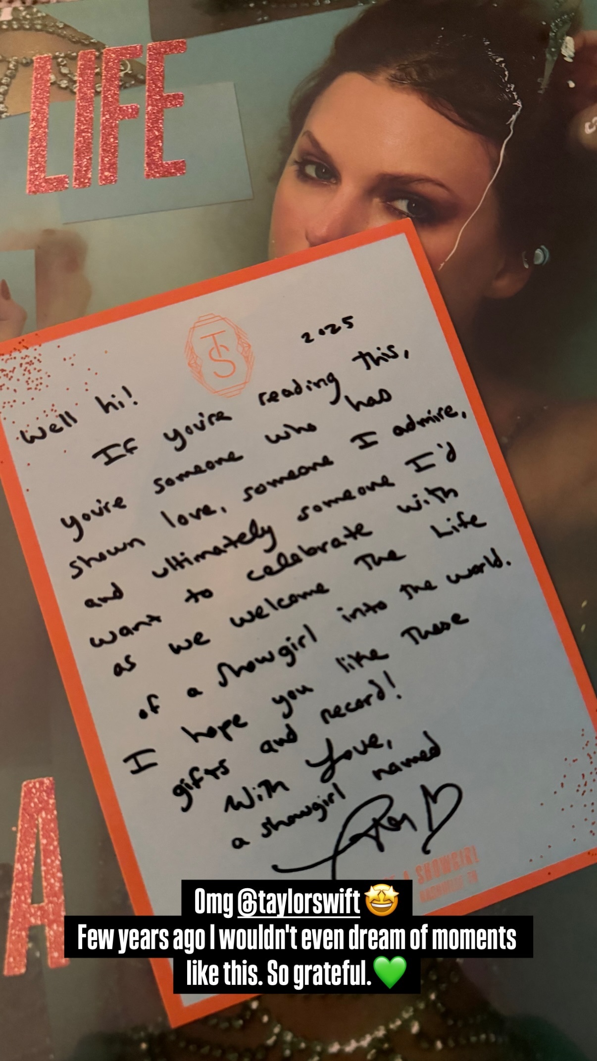 斯瓦泰克收到了来自Taylor Swift的新专礼盒和亲笔信💚