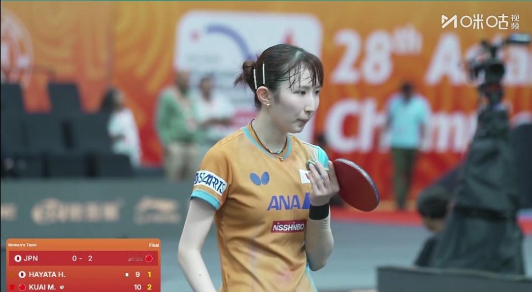 热烈祝贺国乒重新夺得女团亚锦赛冠军奖杯! 小将蒯曼不负众望! 第三盘三单蒯曼3:1(8-11;12-10;11-6;11-9)逆转、大胜日乒三单、一姐早田希娜! 中国队3:0横扫日本队! 在开战前,我发出《日本女乒不要命了?》,让桥本帆乃香打一单,就是賭一把! 桥本赢了,想教训一下国乒! 桥本根本没想打第四盘! 热烈祝贺中国女团重新夺回亚锦赛团体冠军奖杯!
