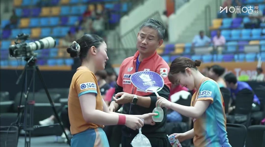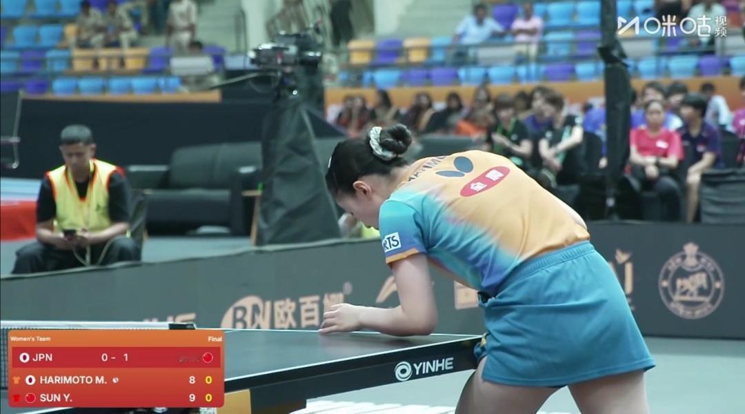 中国队2:0领先日本队! 第二盘国乒一单孙颖莎3:0(11-9;11-5;11-7)横扫日乒张本美和! 第三盘双方三单对决 蒯曼Vs日乒一姐早田希娜 小将蒯曼加油拿下早田, 结束战斗!