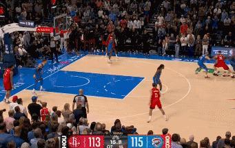 申京补扣,伊森封盖亚历山大,帮助火箭115-115将雷霆拖进第二个加时 北京时间10月22日,火箭与雷霆的揭幕战第一个加时赛最后时刻,申京补扣,伊森封盖亚历山大,帮助球队115-115将雷霆拖进第二个加时。 图一:球队113-115落后,申京强攻未果后,自己补篮将比分扳平。 图二:雷霆还有绝杀机会,伊森一对一封盖亚历山大,帮助球队将比赛拖入第二个加时。