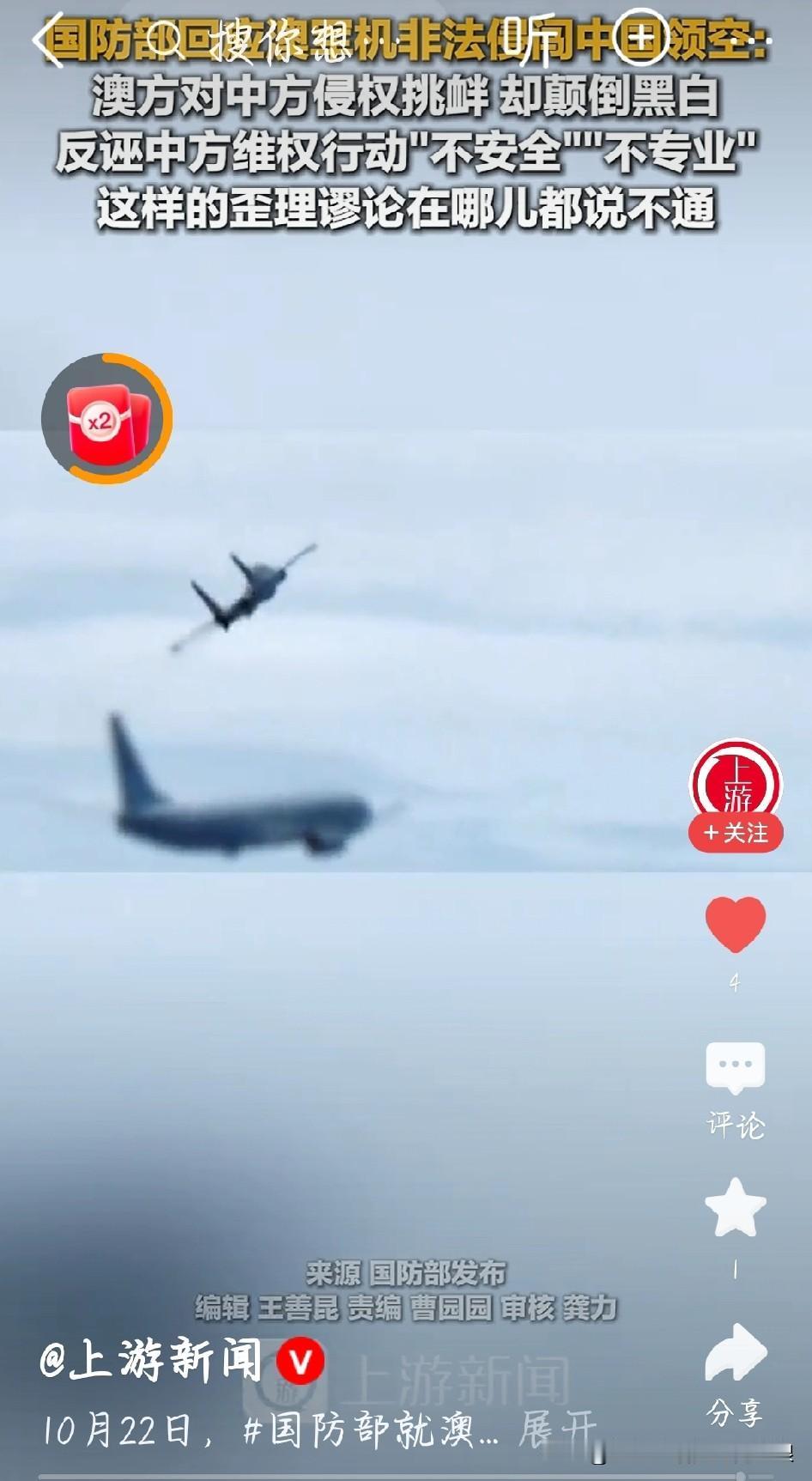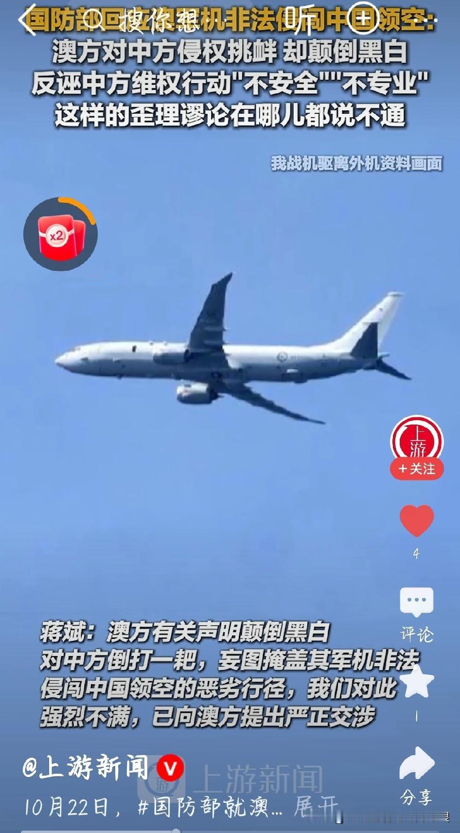 澳军机闯我西沙领空,国防部这回应太硬气! 刚看了国防部回应,真得说句大快人心!澳大利亚那架P-8A军机,没经咱同意就闯进西沙领空,这不是明摆着挑衅嘛。 更气人的是,澳方还倒打一耙,说咱解放军的反制“不安全”。这叫啥道理?有人私闯你家院子,你赶他出去,他还嫌你动作太硬?咱南部战区派海空兵力跟踪监视、警告驱离,完全是按规矩来,合法又专业。 说白了,澳方就是想给美国表忠心,当别人的棋子刷存在感。但咱解放军可不惯着,这次用苏-35反制,下次再来指不定遇上啥更厉害的机型。 国防部说得好,立即停止侵权挑衅!咱的领土主权碰不得,谁来捣乱都没好果子吃,为这硬气回应点个赞!