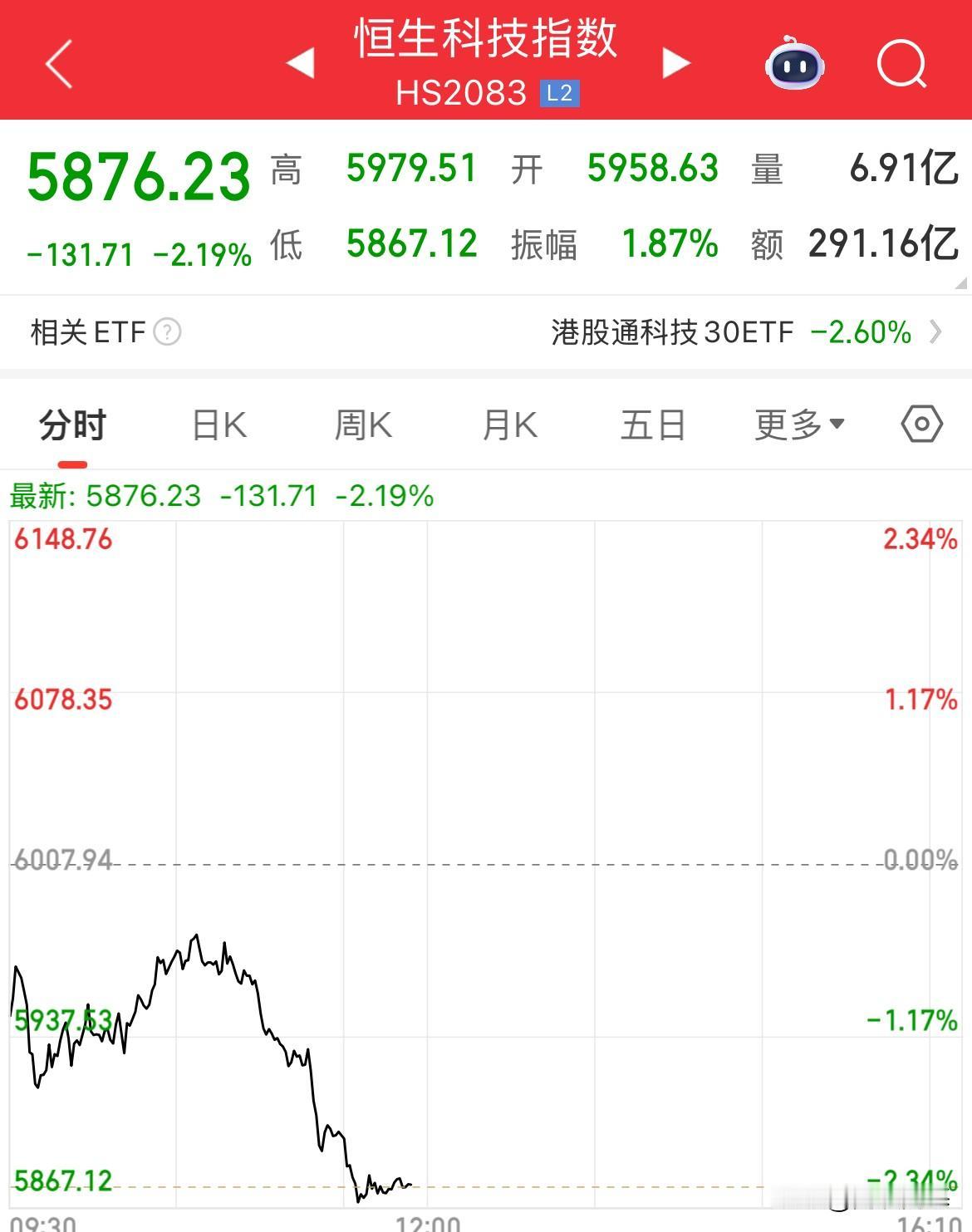 涨了两天,还没捂热,今天又得还回去了,毕竟是前头堡,风雨来袭,总是要顶在前面的,这个位置会否“风浪越大鱼越贵” 港股低开低走,南向净买入37亿港元,指数依然全线走低,恒生科技跌幅超2%,阿里巴巴跌幅2.85%, 指数临近午盘跌幅扩大,这是吓人还是唬人呢, 10月以来恒生科技跌幅12%,恒生指数跌幅5.83%,这反弹真要等不确定性因素落地了,不然就是震荡咋玩的了。