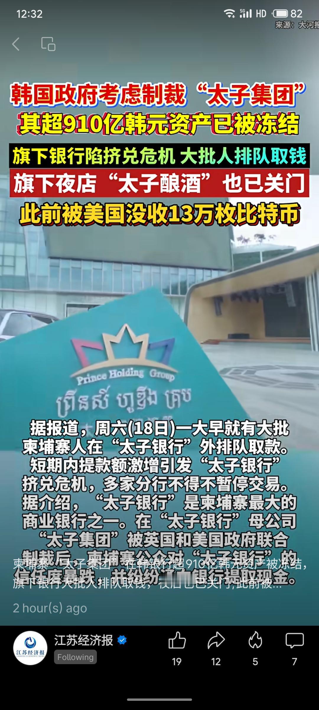 柬埔寨太子集团因涉嫌电信诈骗,遭美韩联合制裁,其在韩超910亿韩元资产被冻结。集团旗下太子银行爆发挤兑危机,多家分行暂停交易,其控股夜店也已关门。此前,美国司法部没收了该集团近13万枚比特币,创始人陈志目前在逃。