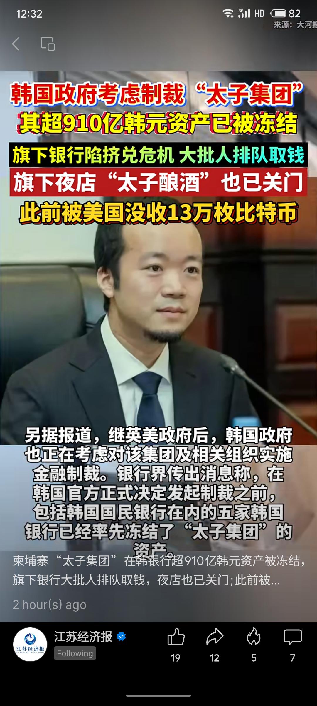 柬埔寨太子集团因涉嫌电信诈骗,遭美韩联合制裁,其在韩超910亿韩元资产被冻结。集