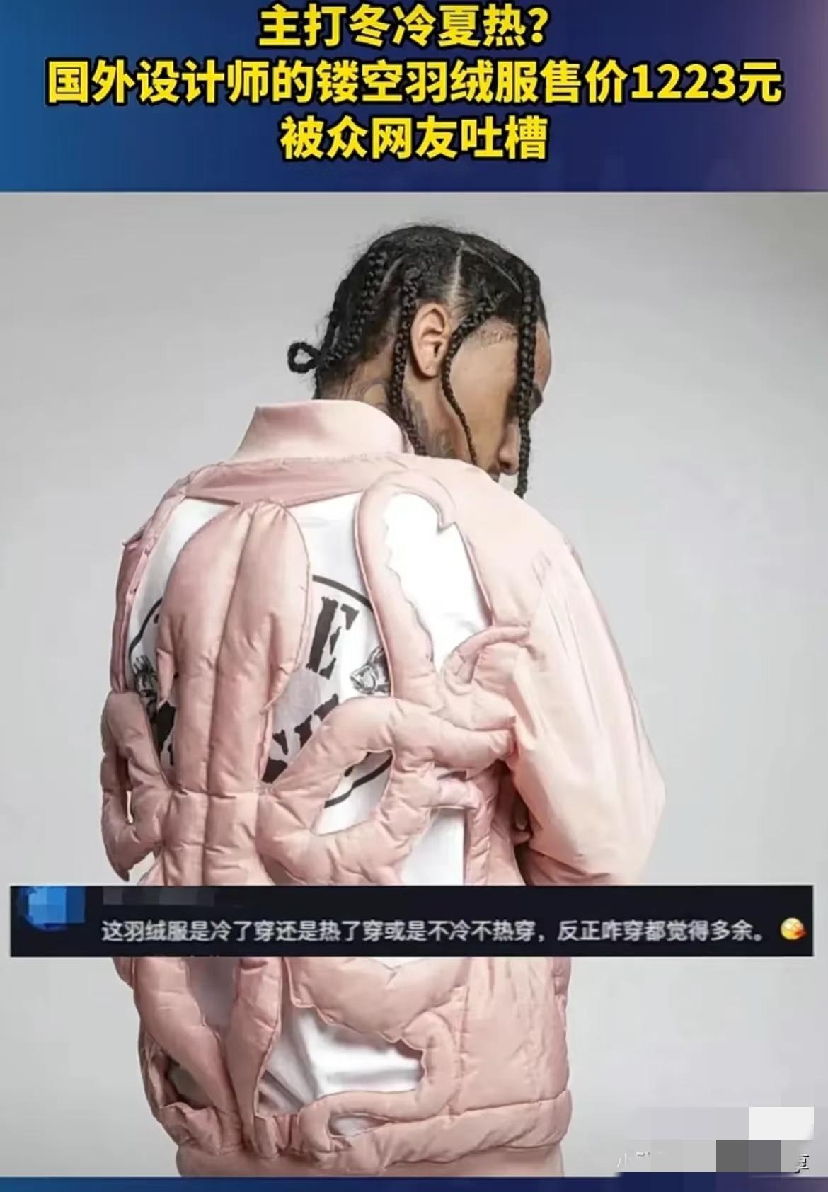 镂空羽绒服、泥土羽绒服,现在的羽绒服穿搭,真是越来越让人猜不透!曾经只追求保暖耐穿,如今却玩起了“反常识”,让人一眼懵,再看才品出味道。 有人说这是为了设计而设计,不实用还容易被误会。但我觉得,这恰恰是穿搭的新表达——保暖不再是唯一标准,衣服成了个性的出口。敢把镂空穿出门,是不怕冷的洒脱;敢把“泥土色”上身,是不迎合大众审美的底气。 羽绒服早不是“臃肿”的代名词,它可以酷、可以怪、可以与众不同。穿搭的意义,从来不是让所有人喜欢,而是让自己舒服又亮眼。你今年冬天会尝试这种“反常规”羽绒服吗?还是坚守传统款?