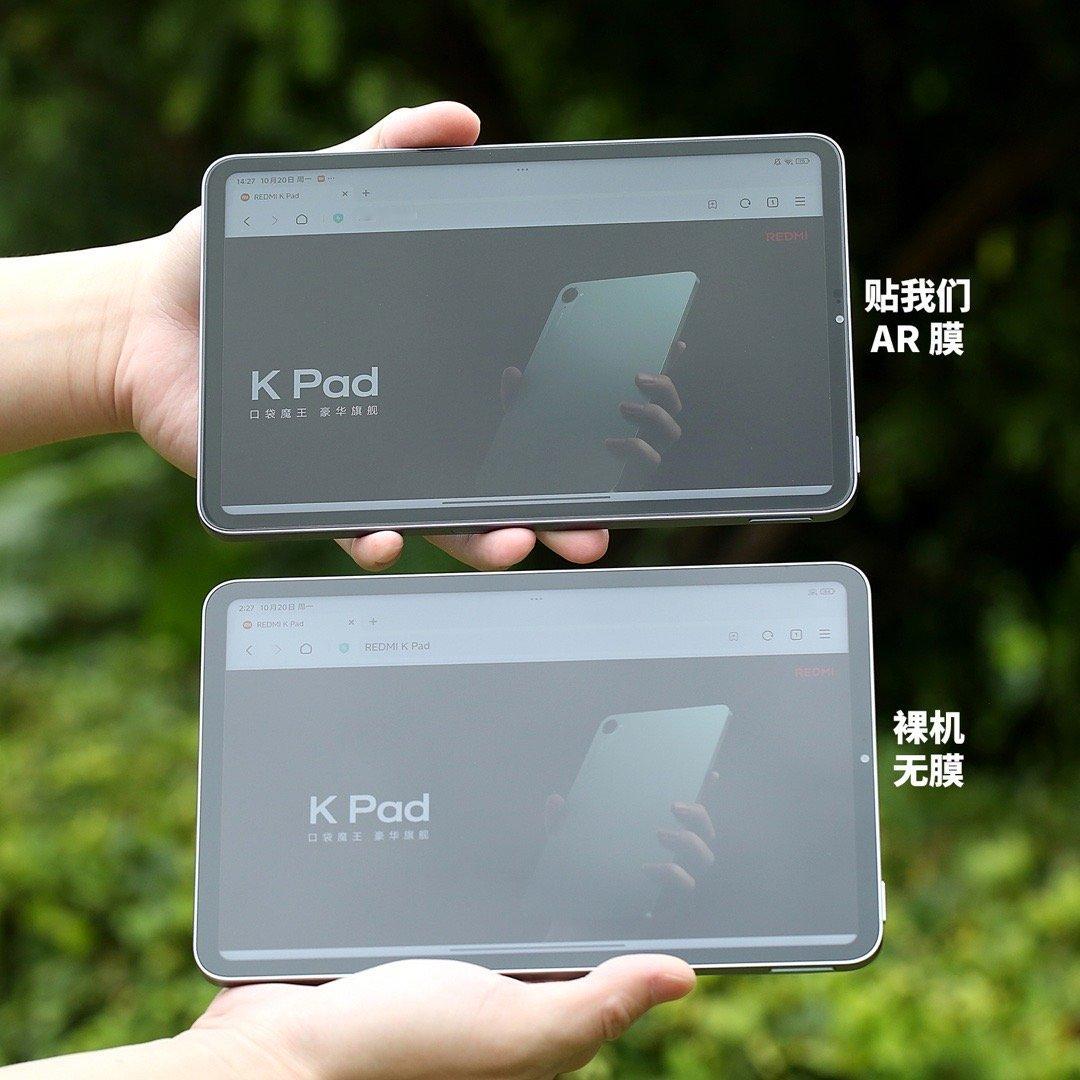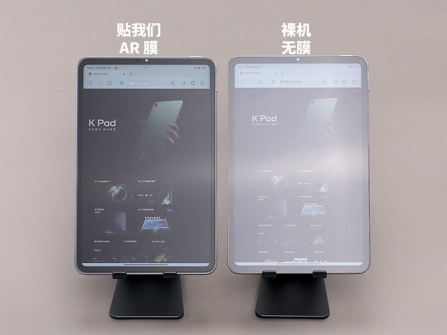 K Pad 平板 AR 抗反射玻璃膜来了[嘻嘻]一体无槽无孔设计,自带 AR 涂层,室外或者强光下可以降低反光降低反射,屏幕内容显示更清晰。附带神器定位框,贴膜更方便轻松