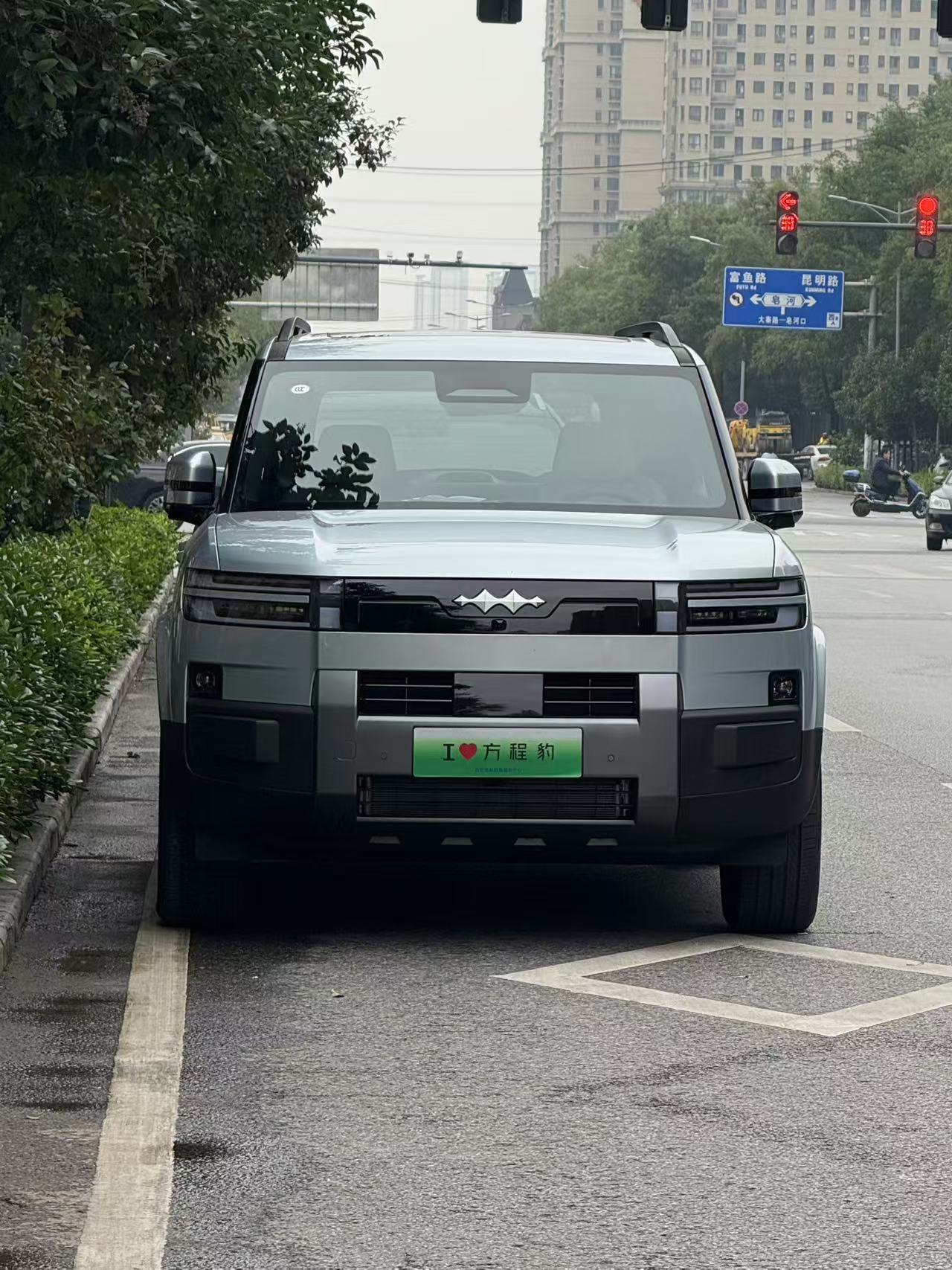 女朋友刚才也碰见一辆方程豹钛7,拍图给我看。她今天碰见两辆了,也很喜欢这车。钛7