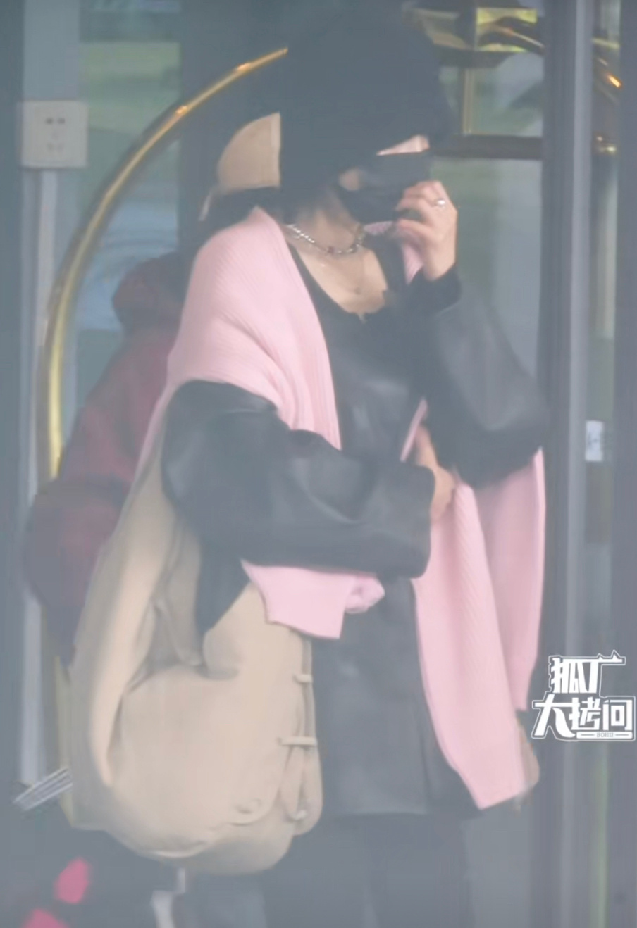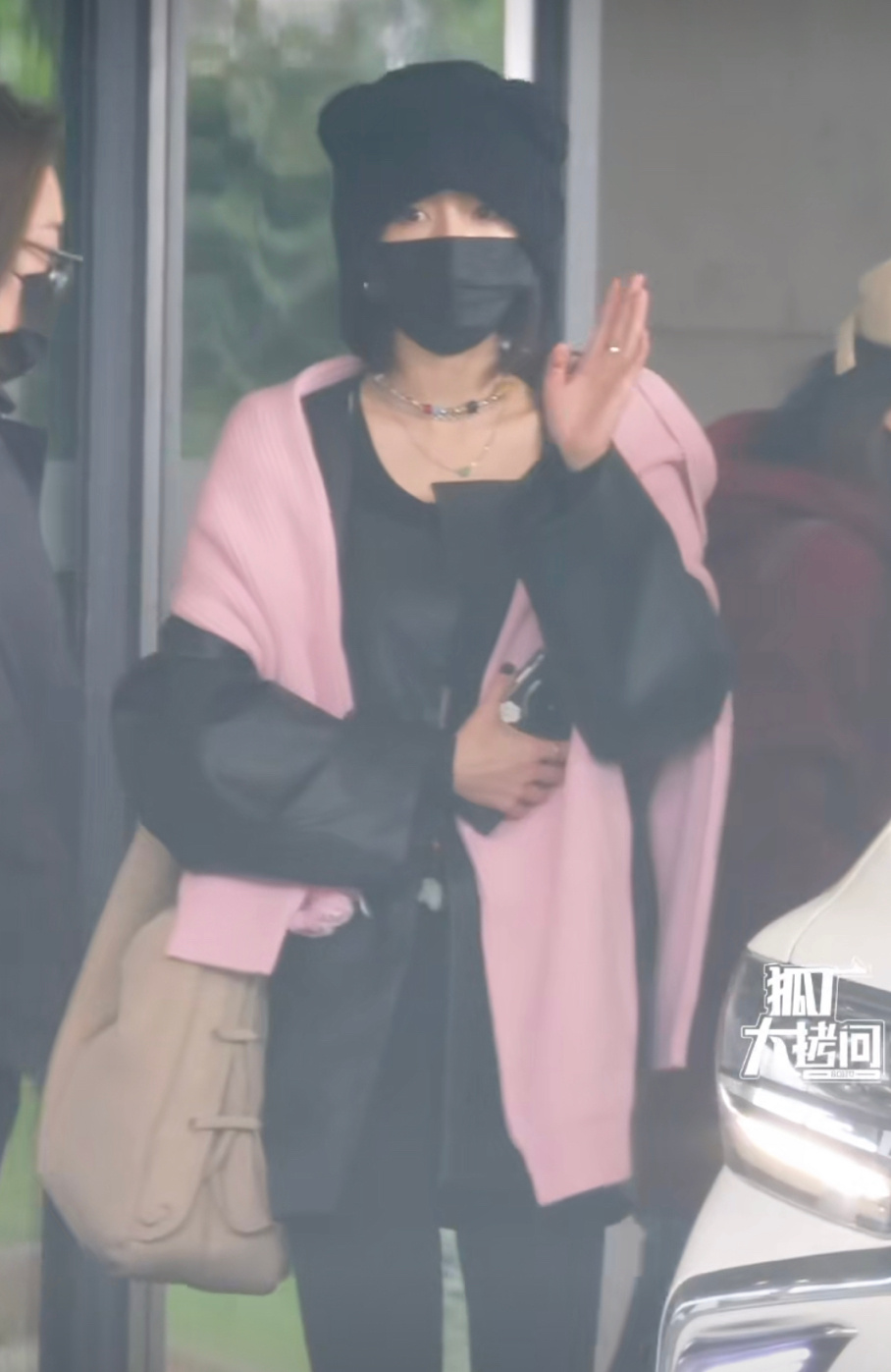 杨幂上海到达,粉色披肩小熊耳朵帽子温柔可爱,期待红毯造型啦[打call]