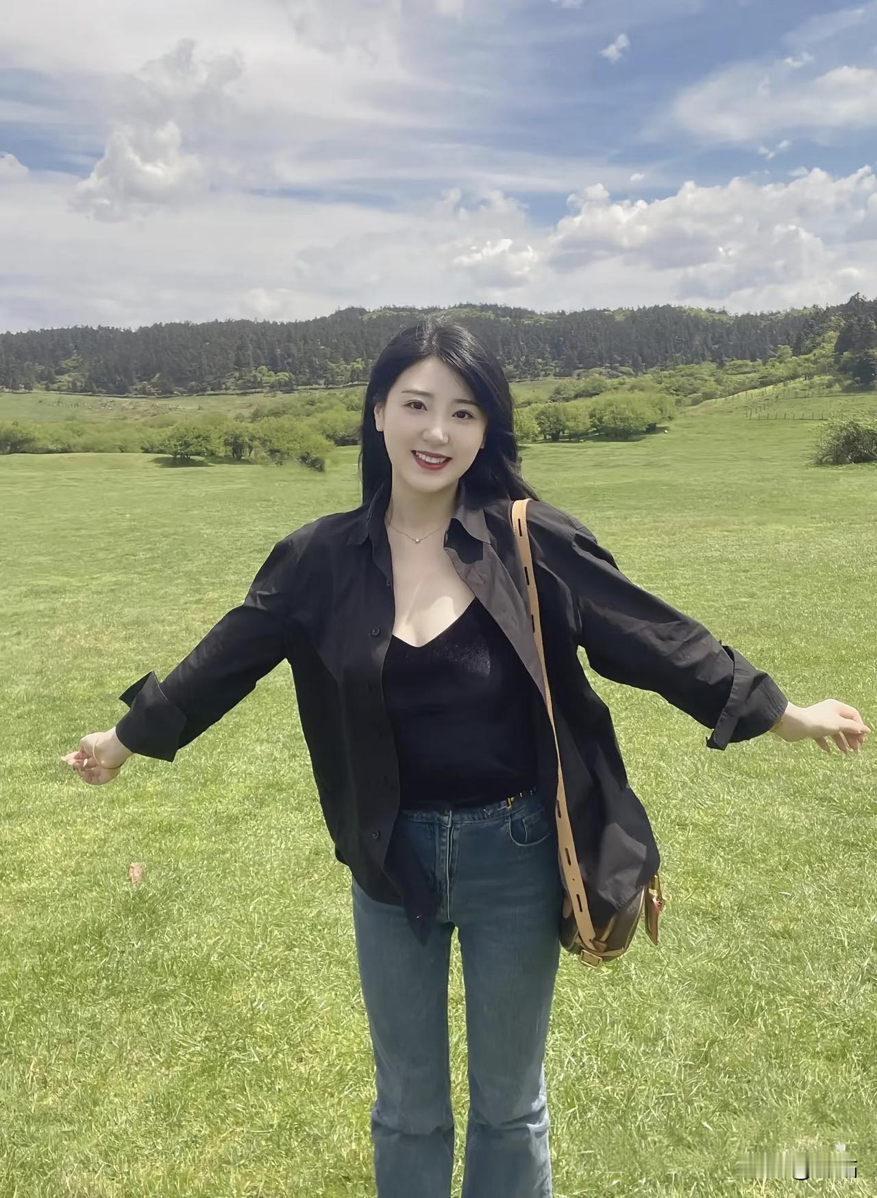 美图欣赏,看图写诗 《原野林间行》 草原连碧天,云絮自悠闲。 林密石阶深,古宅韵味绵。 黑衫风中展,牛仔意里牵。 一笑光阴驻,风情画里眠。 《郊外野游》 绿色草原,蓝天白云。 风过树林,拂去石阶灰尘。 黑衬衫、牛仔裤, 走走停停,此时的她, 已把自己融入到自然风景。 图片来源于网络