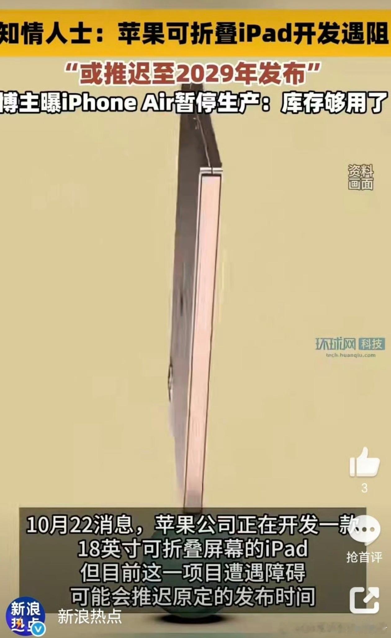 苹果将推出首款可折叠iPad万物皆可折叠!消息称,苹果公司将推出旗下第一款可以折叠的iPad平板。这东西虽然不是新鲜技术,但也算是一个卖点,但这样成本也不低,估计价格也不便宜吧。
