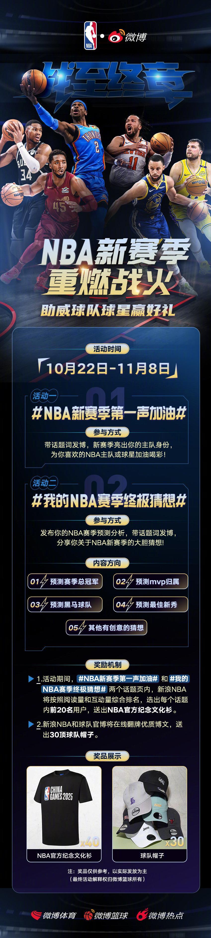 大胆预测新赛季总冠军、MVP、最佳新秀… 晒出你的各种神预测,球队官博在线翻牌送周边!