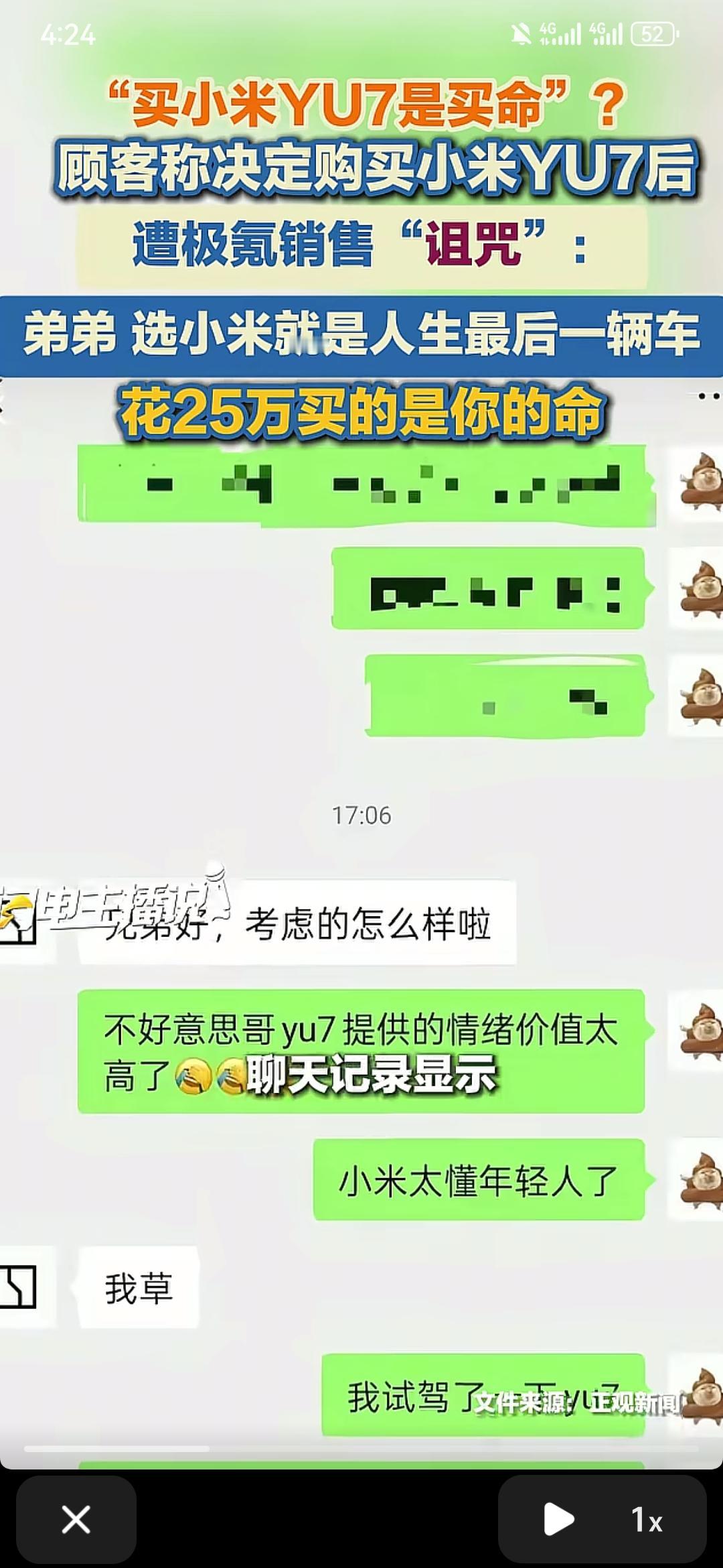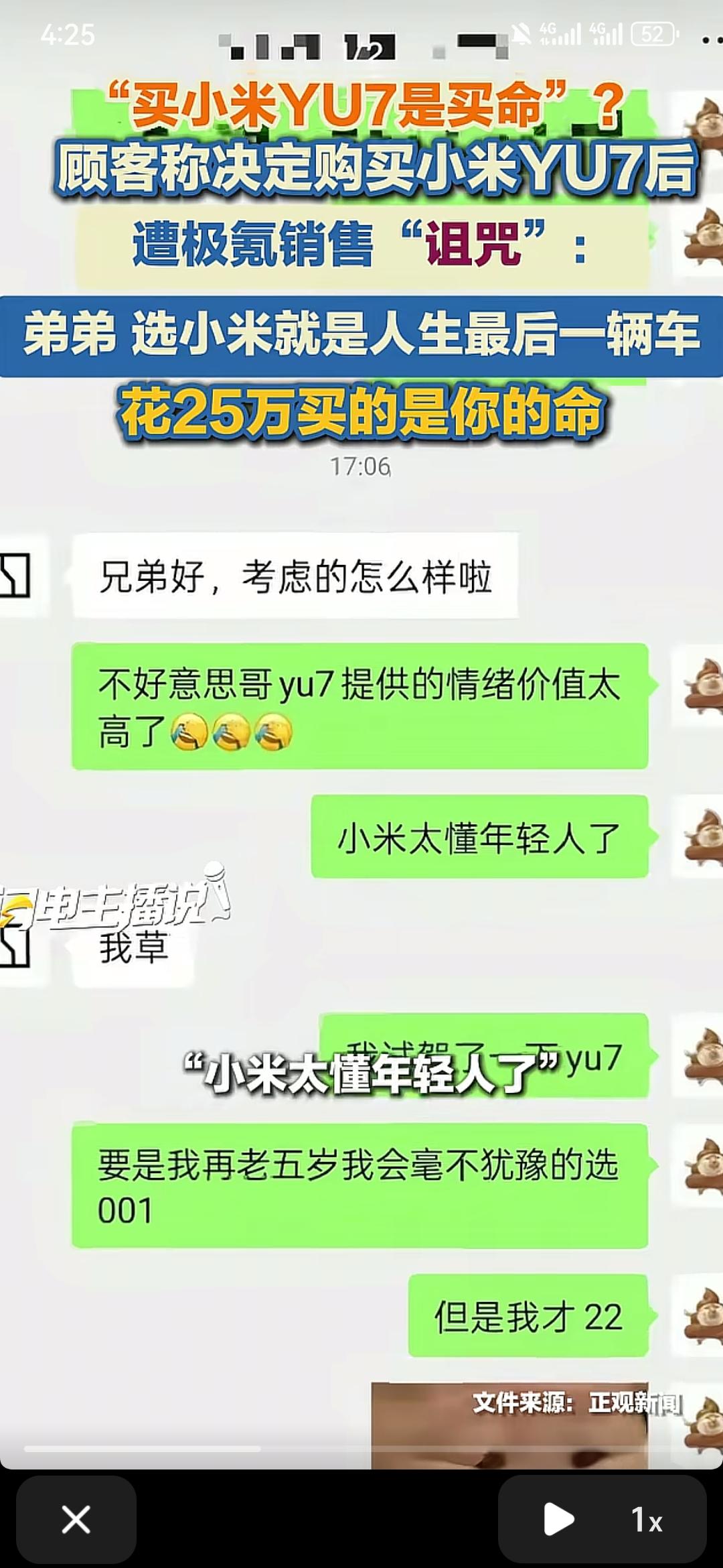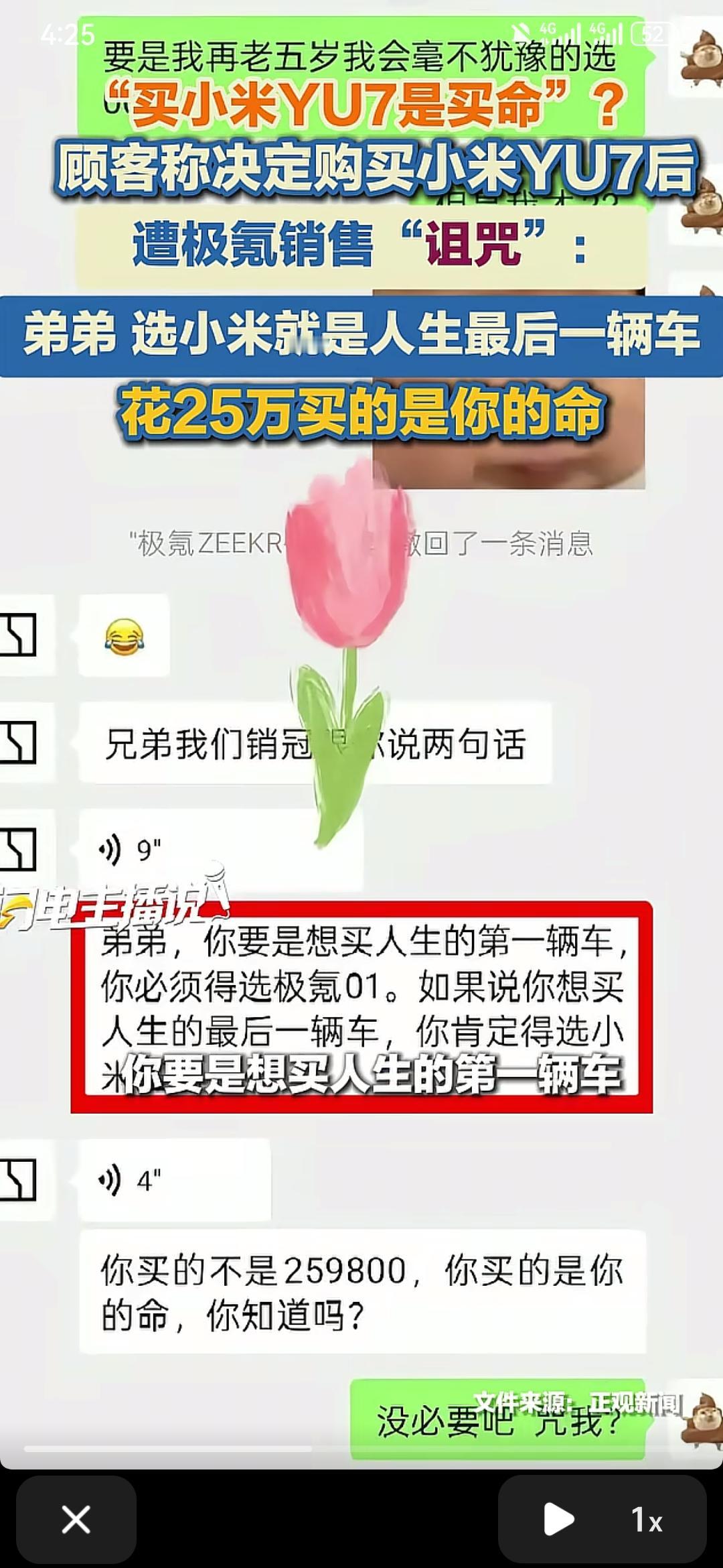 有一位顾客加极氪销售的联系方式后,又决定买小米yu7,极氪销售便对顾客讲:要买人生的第一辆车,必须是极氪;如果是最后一辆车,你必须得选小米yu7,花259800买自己的命 极氪和小米在30万左右的市场里面争的难解难分,但是就小米汽车情绪这一方面讲,完全是碾压的姿态,符合年轻人的口味小米yu7 极氪 大家怎么认为呢?