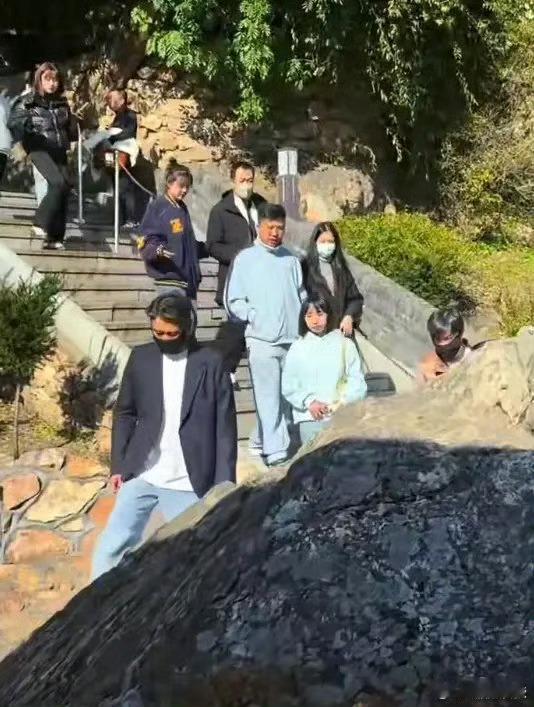 辛柏青与女儿挽手同行眼神充满悲伤偶遇辛柏青与女儿及李乃文大孤山游玩祈福!辛柏青
